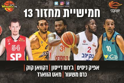 לצידו בחמישייה: אפיק ניסים שסיפק דאבל-דאבל ראשון העונה (18 נקודות ועשרה אסיסטים מול איבוד בודד) בניצחון המרשים של הפועל "פתאל" אילת על הפועל "יונט" חולון; דקוואן קוק שצלף ארבע שלשות ברבע האחרון וסיים עם 20 נקודות (6-8 לשלוש) בניצחון החוץ הקריטי של עירוני "חי מוטורס" נס ציונה על גלבוע/גליל; כרם משעור שרשם שיאי עונה בנקודות (17) ובמדד (24) בניצחון החוץ של מכבי "FOX" ת"א על האקסית בני "רב בריח" הרצליה; ומאט הווארד שסייע להפועל "SP מצר" ת"א לשוב למאזן חיובי עם 18 נקודות (7-8 מהשדה) ומדד 28 בניצחון על עירוני נהריה.