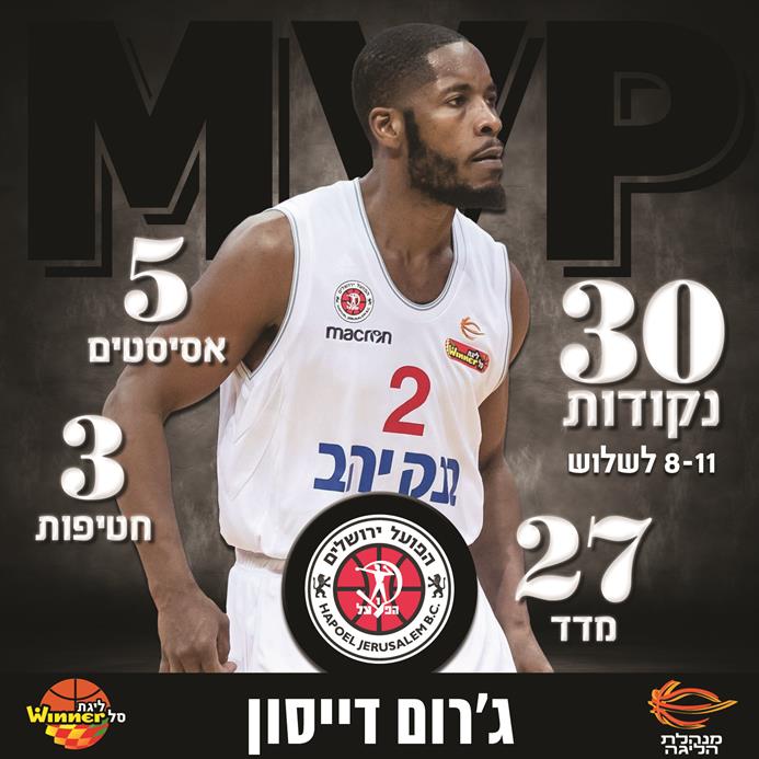 הגארד של הפועל "בנק יהב" ירושלים שיפר את שיאו העונתי בנקודה (30) בניצחון בראשל"צ. לצידו בחמישייה: אפיק ניסים, דקוואן קוק, כרם משעור ומאט הווארד