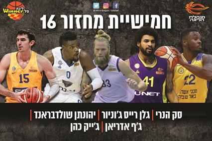 לצידו בחמישייה: סק הנרי שהתפוצץ ברבע האחרון עם 14 נקודות (מתוך 25 בסה"כ) ועזר למכבי אשדוד/באר טוביה לקבוע שיא מועדון עם ניצחון שישי ברציפות, בחוץ על עירוני "חי מוטורס" נס ציונה; יהונתן שולדבראנד שקלע 10 מ-17 נקודותיו (4 מ-6 לשלוש) ברבע האחרון, בו הדפה עירוני נהריה קאמבק של הפועל גלבוע/גליל; ג'ף אדריאן שהוביל את בני "רב בריח" הרצליה לניצחון חוץ גדול על הפועל "SP מצר" ת"א עם 25 נקודות, 11 ריבאונדים ומדד 32; וג'ייק כהן שרשם 19 נקודות, 9 ריבאונדים ומדד 30 בניצחון מכבי "FOX" ת"א על קבוצתו לשעבר, מכבי "ILAND.TV" ראשל"צ.