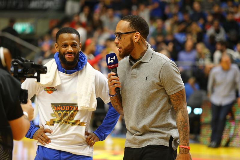 ג'קסון בראיון סיום המשחק אצל שדר הקווים דיאנג'לו הריסון (צילומים: לירון מולדובן ועודד קרני)