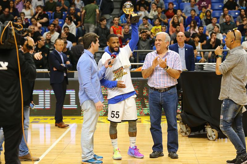 ג'קסון מקבל את תואר ה-MVP מיו"ר הטוטו מר יוסי פילוס (צילומים: לירון מולדובן ועודד קרני)