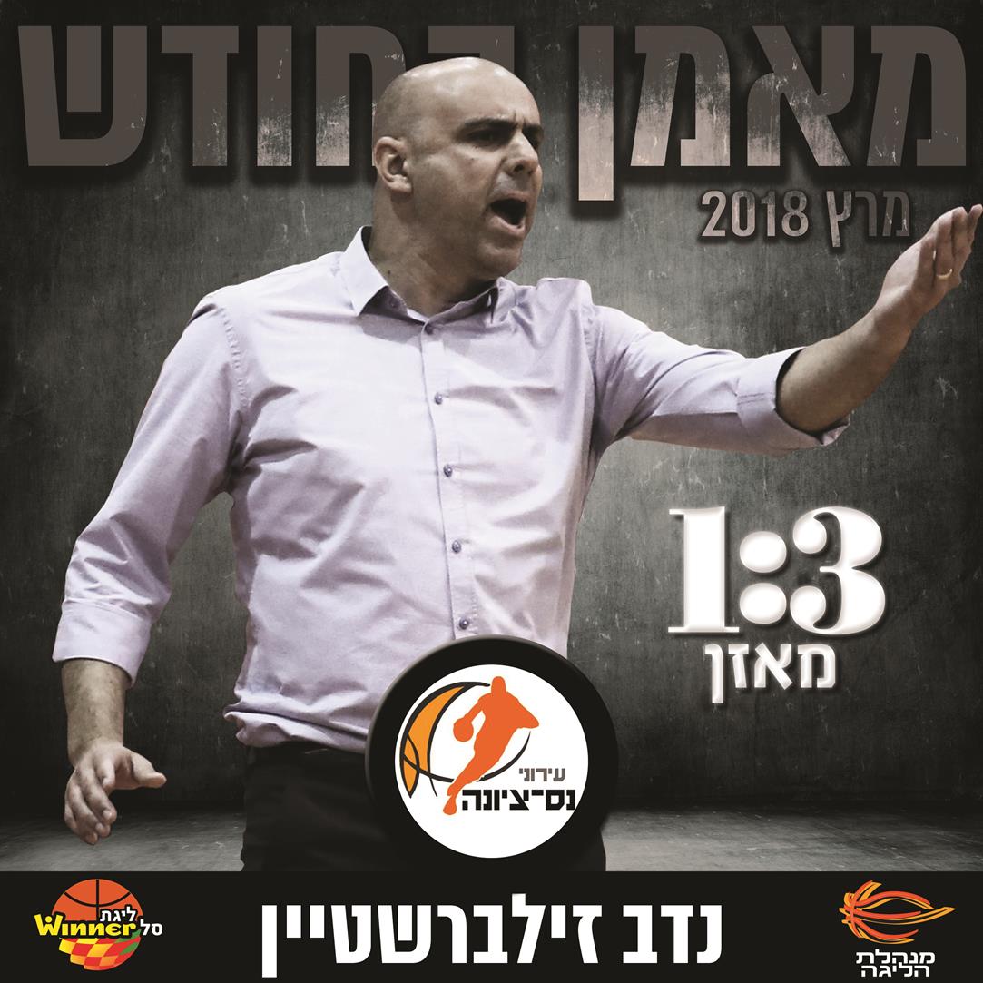 את החודש החולף פתחה עירוני "חי מוטורס" נס ציונה כמועמדת לירידה – ולמרות שהסכנה לא הוסרה עדיין, היא סוגרת אותו כשהיא במרחק נקודה אחת בלבד מהמקום החמישי בטבלה. נדב זילברשטיין, האיש שהפך למזוהה איתה בשנים האחרונות, קיבל את ההכרה על היכולת המצוינת של קבוצתו ונבחר על ידי פאנל הבוחרים למאמן חודש מרץ בליגת ווינר סל.