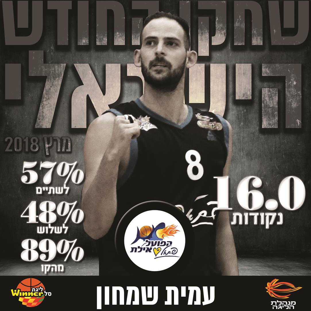 שמחון שחזר בקיץ לקדנציה שנייה באילת משפר את המספרים שלו מחודש לחודש, כאשר השיא היה במרץ: 16.0 נקודות, 4.0 ריבאונדים, 2.3 אסיסטים ומדד 14.8, כשהוא מדייק באחוזים נהדרים מכל הטווחים (57% לשתיים, 48% לשלוש ו-89% מהקו). הגארד-פורוורד עומד בדיוק על 14.0 נקודות למשחק – שלישי בין הישראלים בליגה ונתון זהה לזה שהציב אשתקד במדי סגנית האלופה מכבי חיפה.