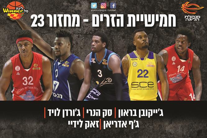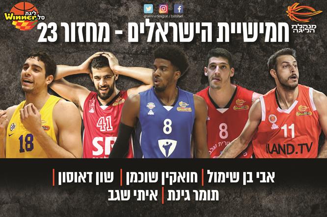 השבוע החלטנו להיות אקטואליים ובחרנו גם את חמישיית המחזור של הישראלים: אבי בן שימול שמסר שיא קריירה של 16 אסיסטים וגם קלע 11 נקודות בהפסד הדרמטי של מכבי "ILAND.TV" ראשל"צ; שון דאוסון שרשם 19 נקודות, 8 ריבאונדים, 5 אסיסטים ומדד 26 בניצחון הדרמטי של הרצליה בבירה; חואקין שוכמן שקלע 10 נקודות, מסר 5 אסיסטים והוריד שיא קריירה של 13 ריבאונדים בחולון; תומר גינת שרשם 13 נקודות, 6 ריבאונדים ו-4 אסיסטים והוביל את הפועל "SP מצר" ת"א בפלוס-מינוס (17+) בניצחון בית חשוב; ואיתי שגב שרשם שיאי עונה בנקודות (12) ובמדד (20) בניצחון מכבי "FOX" ת"א על מכבי "Hunter" חיפה (שחקן שישי: עידן זלמנסון עם 20 נקודות ו-10 ריבאונדים).