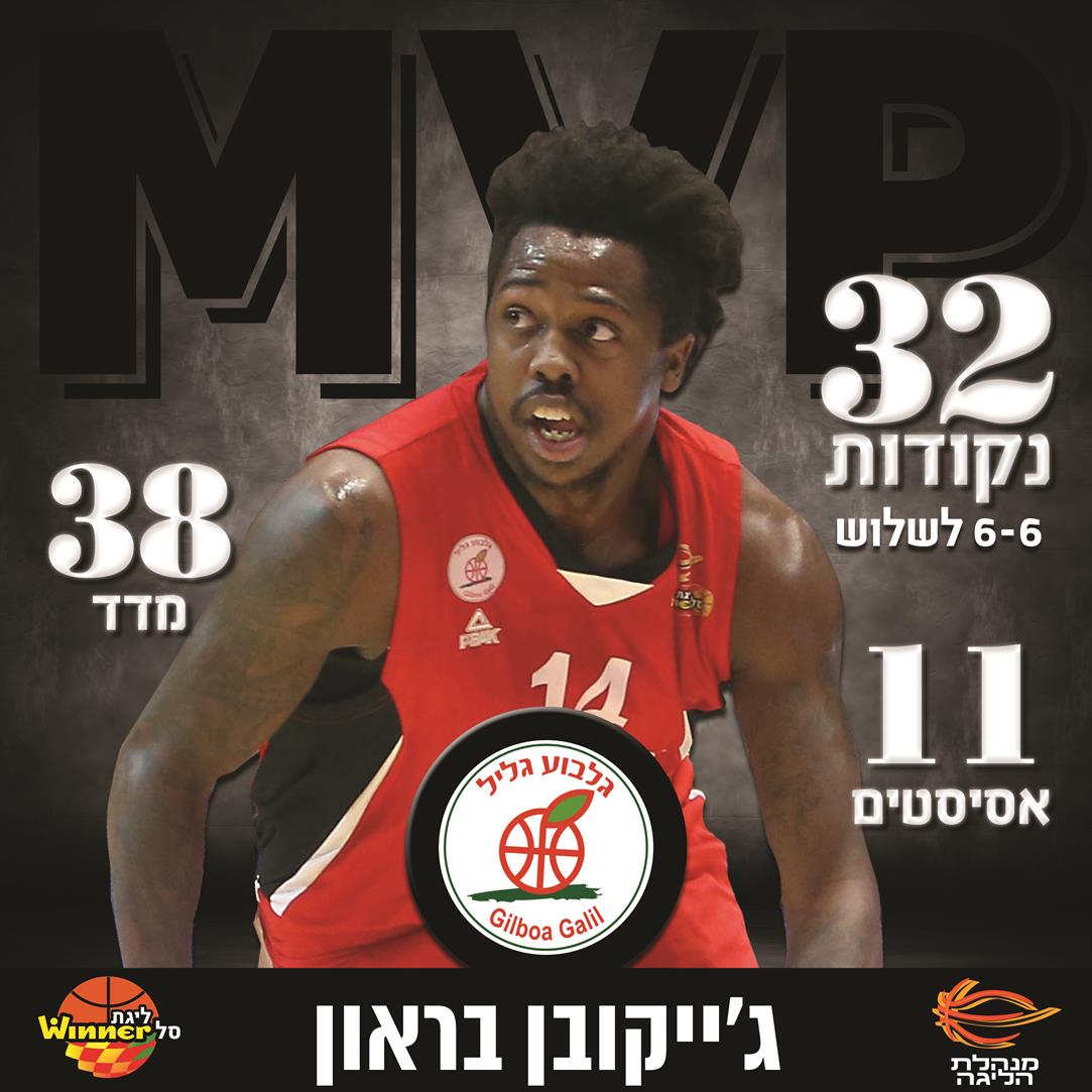 חמישה שחקנים שונים של הפועל גלבוע/גליל כבר זכו בתואר מצטיין המחזור פעם אחת העונה, והשבוע ג'ייקובן בראון הוא הראשון מביניהם שעושה זאת בפעם השנייה. הגארד של האדומים מהעמק, שנמצא בכושר נהדר, חצה את רף 30 הנקודות בפעם השלישית בשמונת המחזורים האחרונים והקדים במעט את חברו לקבוצה זאק לידיי ואת ג'ף אדריאן, שלהטו גם הם השבוע.
