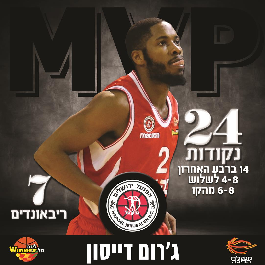 שני המפגשים הראשונים של ג'רום דייסון עם מכבי "FOX" ת"א העונה היו טראומטיים למדי: בקלאסיקו הראשון הוא קלע רק 1 מ-14 מהשדה ובשני נעצר על 2 מ-10 מהשדה והשאיר נקודות קריטיות על הקו במאני טיים. רגע לפני שהצהובים משלימים סוויפ עונתי על הפועל "בנק יהב" ירושלים, הוא התעורר והוביל את האלופה לניצחון חשוב בתצוגה נפלאה שהקנתה לו את תואר מצטיין המחזור ה-26 בליגת ווינר סל.
