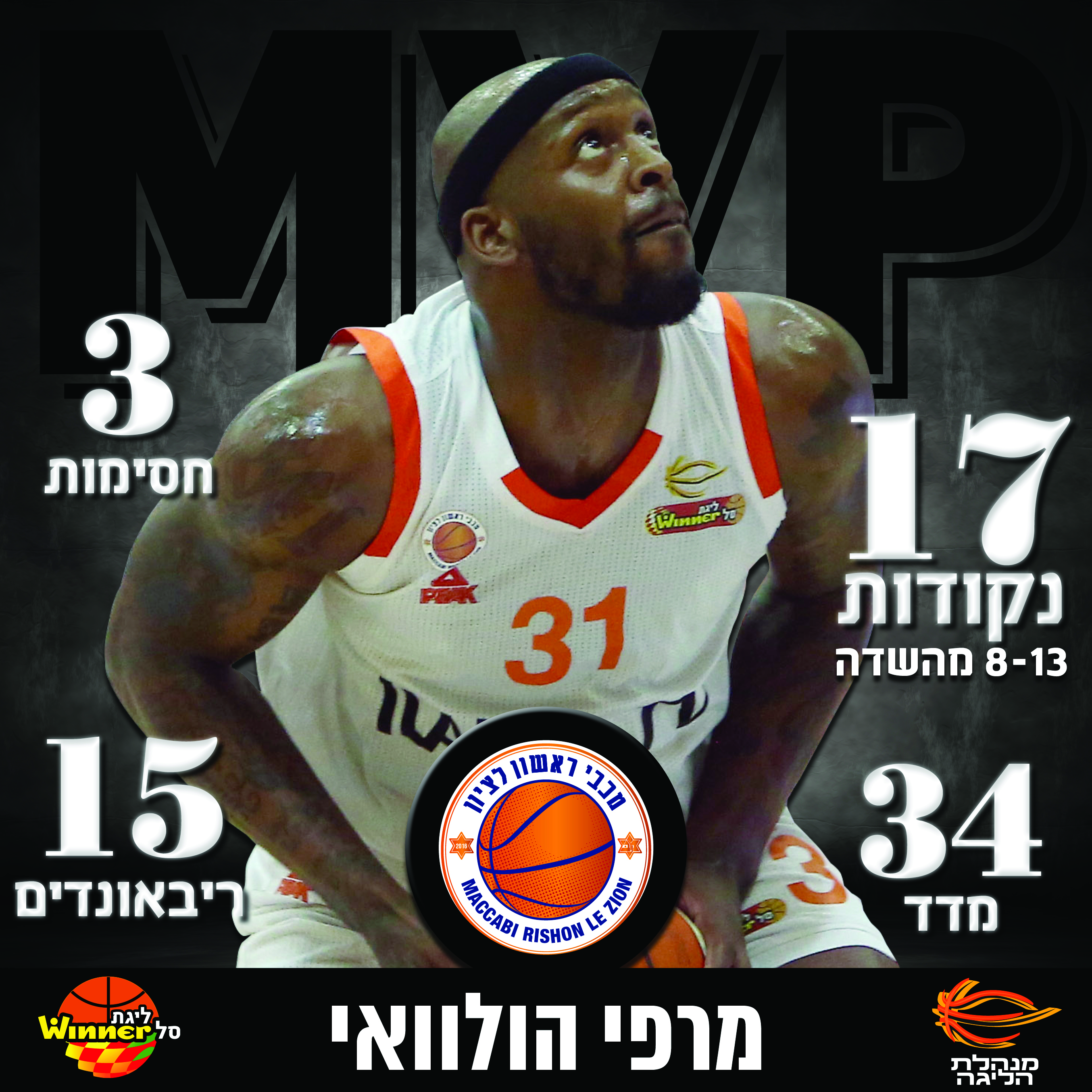 בפעם השנייה העונה והשלישית בסך הכל בשתי עונותיו בליגת ווינר סל, מרפי הולוואי הוא מצטיין המחזור. הסנטר של מכבי "ILAND.TV" ראשל"צ עזר לה להשיג ניצחון בכורה תחת צביקה שרף, 66:73 על הפועל "פתאל" אילת במשחק שפתח את המחזור ה-24 שחולק לשתיים: החלק הראשון לפני שבועיים והשני אתמול ושלשום.