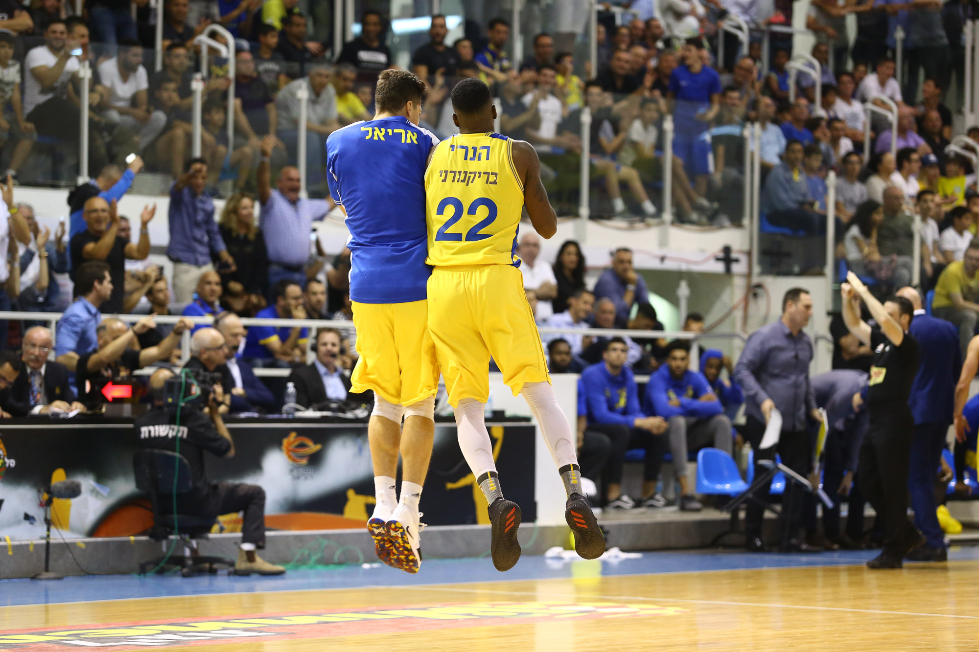 הנרי ואריאל חוגגים. ניצחון תשיעי ברציפות (צילום: לירון מולדובן)
