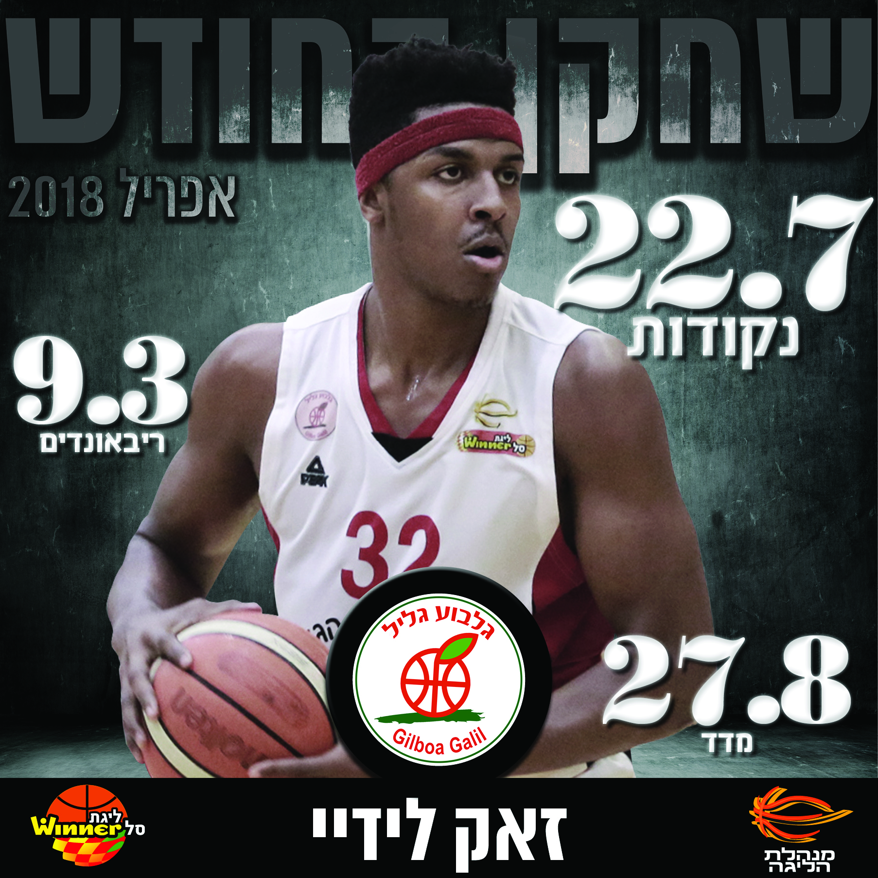 בפעם השנייה תוך פחות מחצי שנה, זאק לידיי הוא שחקן החודש של ליגת ווינר סל. הביג מן הרוקי של הפועל גלבוע/גליל, שזכה בתואר גם בדצמבר, הוביל אותה לשישה ניצחונות רצופים באפריל וקיבל שני שלישים מקולות פאנל הבוחרים, המורכב מעיתונאים מכל גופי התקשורת שמסקרים את הליגה. הוא הקדים את סק הנרי ממכבי אשדוד/באר טוביה שהגיע למקום השני ואת חברו לקבוצה דיאנג'לו הריסון שסיים שלישי במשאל.