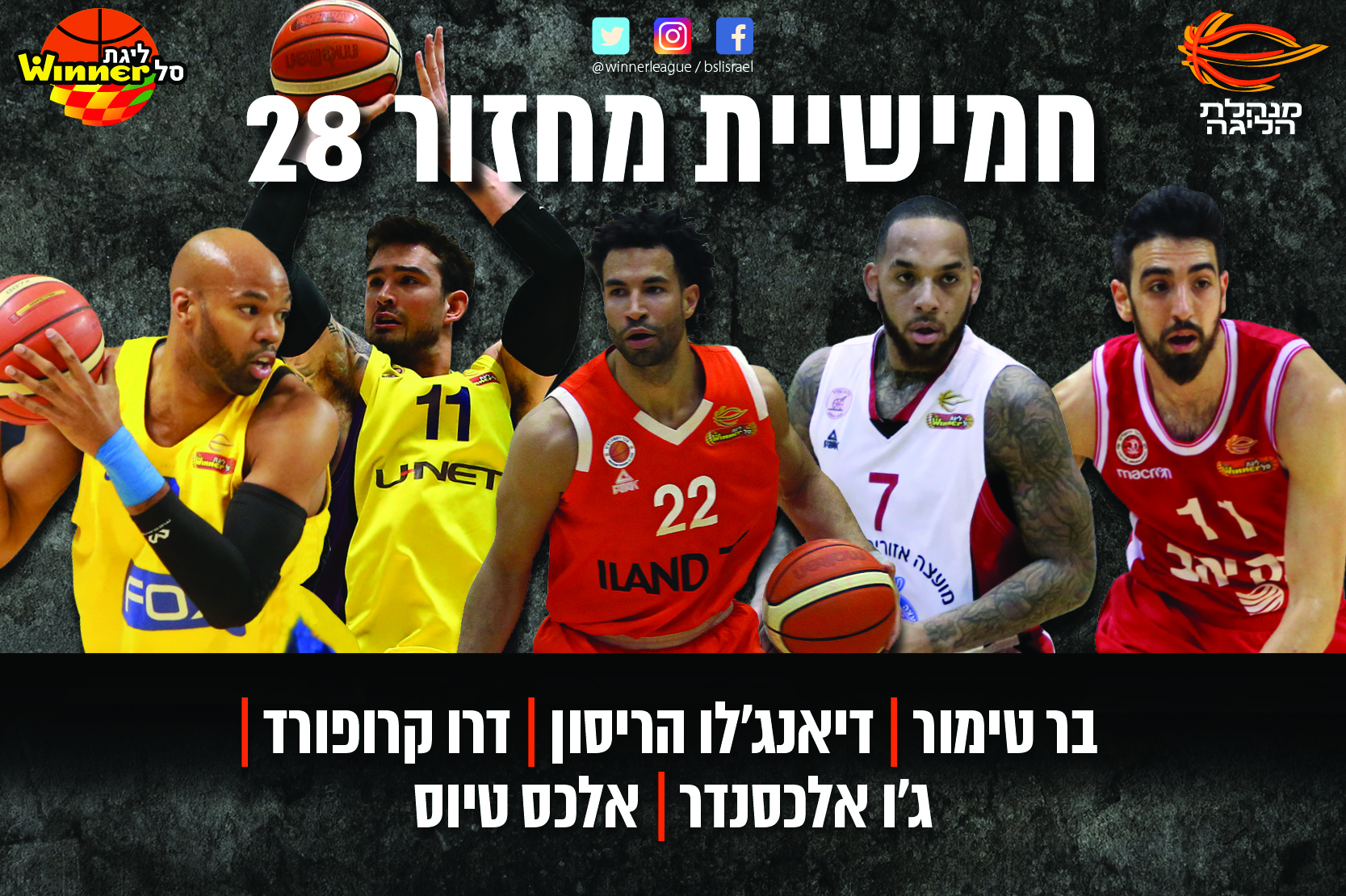 לצידו בחמישייה: בר טימור שעזר להפועל "בנק יהב" ירושלים לקטוע את רצף ההפסדים של מכבי אשדוד/באר טוביה עם 15 נקודות, 7 אסיסטים ללא איבוד ומדד 23; דיאנג'לו הריסון שהוביל קאמבק נוסף של הפועל גלבוע/גליל עם 33 נקודות ומדד 38 נגד עירוני "חי מוטורס" נס ציונה; דרו קרופורד שחגג בניצחון הגדול של מכבי "ILAND.TV" ראשל"צ על האקסית בני "רב בריח" הרצליה עם 28 נקודות, 8 ריבאונדים, 5 אסיסטים ומדד 39; ואלכס טיוס שרשם 17 נקודות, 8 ריבאונדים ומדד 25 בדרבי בו חזרה מכבי "FOX" ת"א לנצח את הפועל "SP מצר" ת"א.
