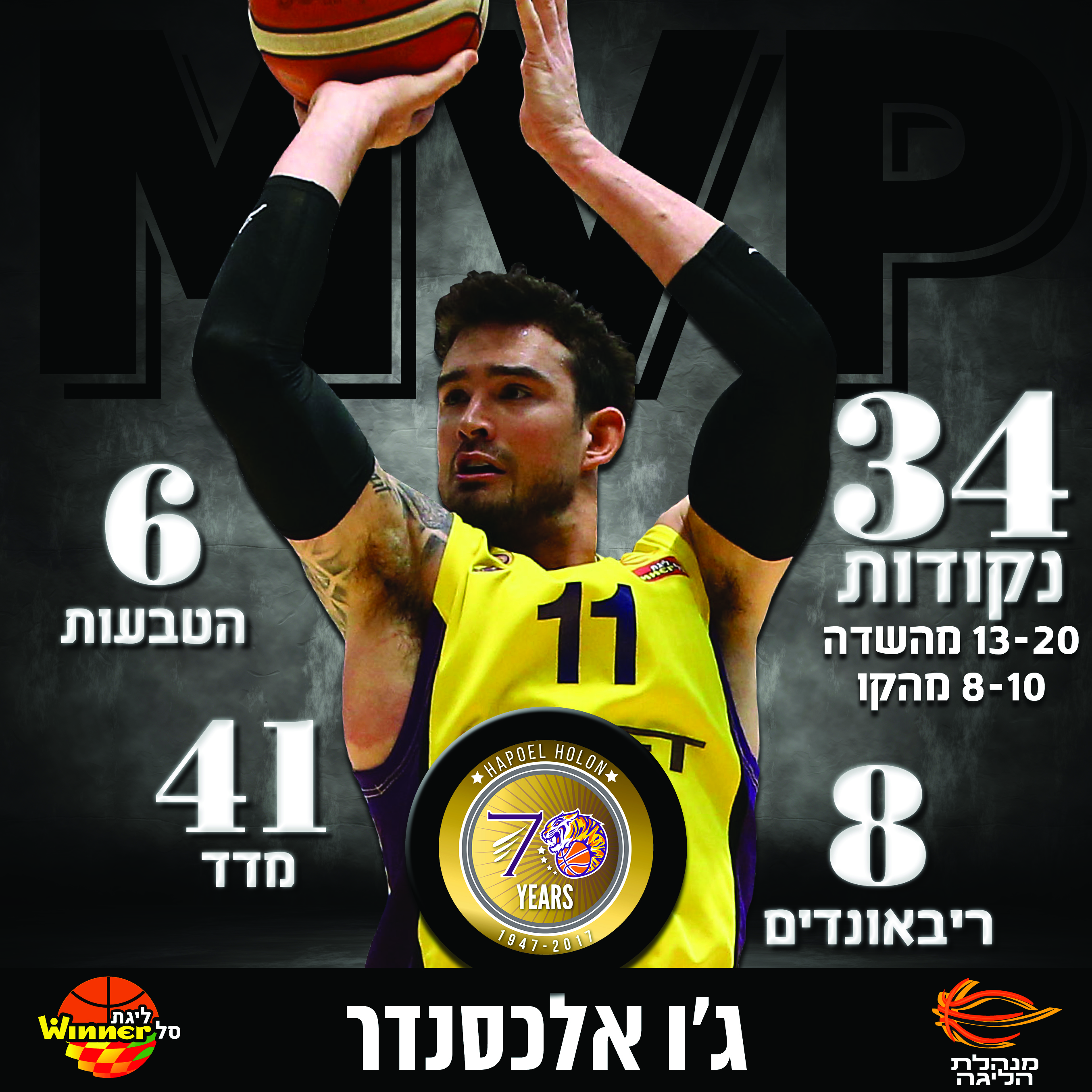 הפורוורד-סנטר המתאזרח קלע שיא קריירה של 34 נקודות ב-35 דקות (13 מ-20 מהשדה, 8 מ-10 מהקו), הוריד 8 ריבאונדים, חסם 2 זריקות וסיים עם מדד 41. בנוסף, הוא הטביע לא פחות משש פעמים – שיא ליגה עונתי. ברבע הראשון, כשחולון התקשתה מאוד בהתקפה ועמדה על 0 מ-7 מעבר לקשת, הוא החזיק אותה בתמונה עם 16 נקודות ללא החטאה ובדקות הסיום, כשאילת הצליחה לחזור שוב למשחק, הוא לקח את העניינים לידיים ומנע מהפך.