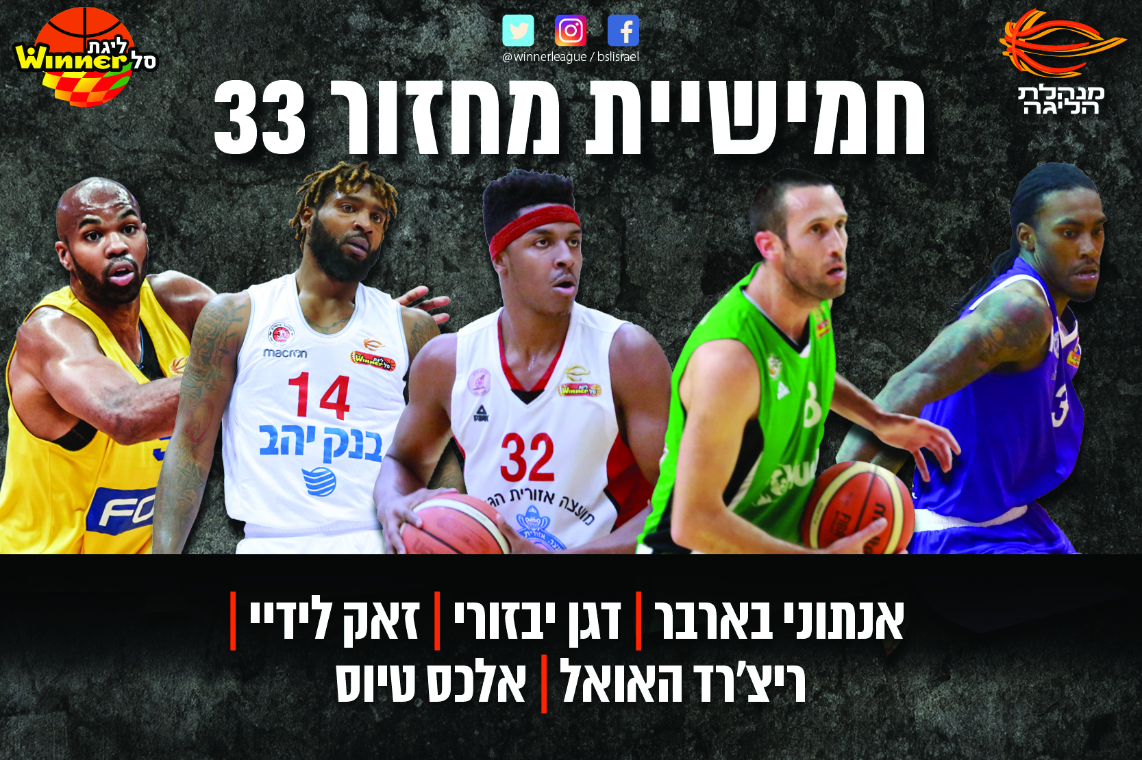 סנטר הנבחרת רשם שיאי עונה בנקודות ובמדד ועזר להפועל "בנק יהב" ירושלים להבטיח את המקום השלישי. לצידו בחמישייה: בארבר, יבזורי, לידיי וטיוס