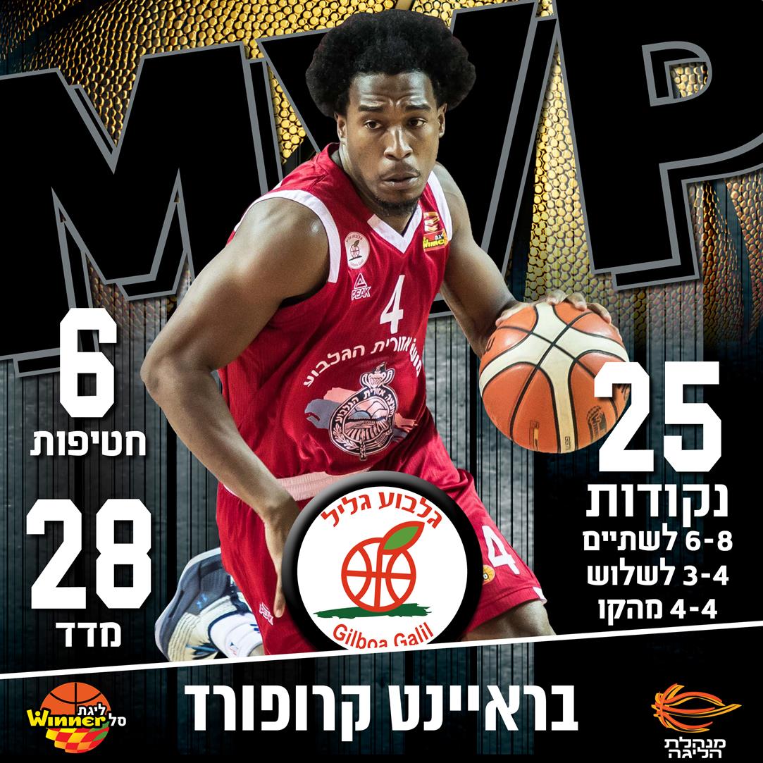 הגארד הוביל את הפועל גלבוע/גליל לניצחון חוץ על הפועל "SP מצר" ת"א עם 25 נקודות באחוזים נהדרים (6-8 לשתיים, 3-4 לשלוש, 4-4 מהקו), 3 אסיסטים, 6 חטיפות ומדד 28. האדומים מגן נר פתחו לא טוב ונקלעו לפיגור דו-ספרתי מוקדם, אבל קרופורד היה הראשון שנכנס לעניינים ועם יכולת מצוינת הוא עזר להם לבנות את הקאמבק בהדרגה.