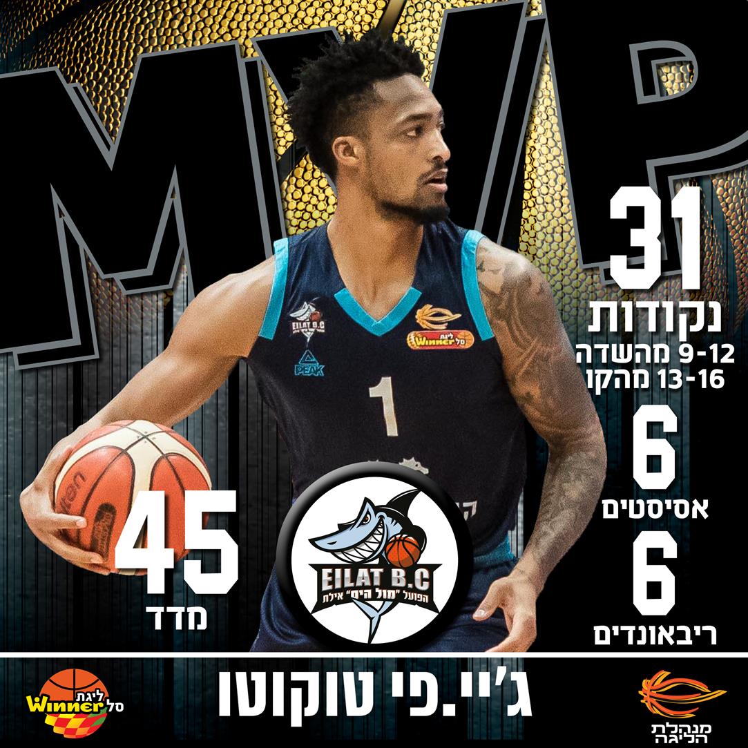 עוד מחזור, עוד ניצחון של הפועל "מול הים" אילת ועוד כמה עדכונים משמחים לספרי ההיסטוריה שלה. הקבוצה מהעיר הכי דרומית בארץ השוותה את שיא המועדון שלה עם תשעה ניצחונות ליגה רצופים ולראשונה העונה שחקן השבוע בליגת ווינר סל מגיע משורותיה: ג'יי.פי טוקוטו שהשווה את שיא הליגה העונתי במדד עם 45 בניצחון על הפועל "SP מצר" ת"א. בנוסף, הוא השווה את שיא המועדון במדד, אותו קבע קווין פאלמר בעונת 13/14.