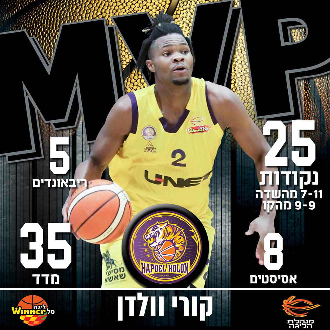 וולדן השווה את שיא הקריירה הטרי שלו בליגה עם 25 נקודות (7 מ-11 מהשדה, 9 מ-9 מהקו), שיפר את שיא הקריירה באסיסטים עם 8 ובדיוק כמו בניצחון על עירוני נהריה, התעלה ברבע האחרון עם 10 נקודות. הגארד האמריקאי תרם מעל 20 נקודות ומדד 32 בכל אחד משלושת ניצחונות הליגה האחרונים של מחזיקת הגביע והוא מחפה מצוין על קאליף ווייאט הפצוע בהתקפה, לצד ההגנה הטובה והמוכרת שלו.