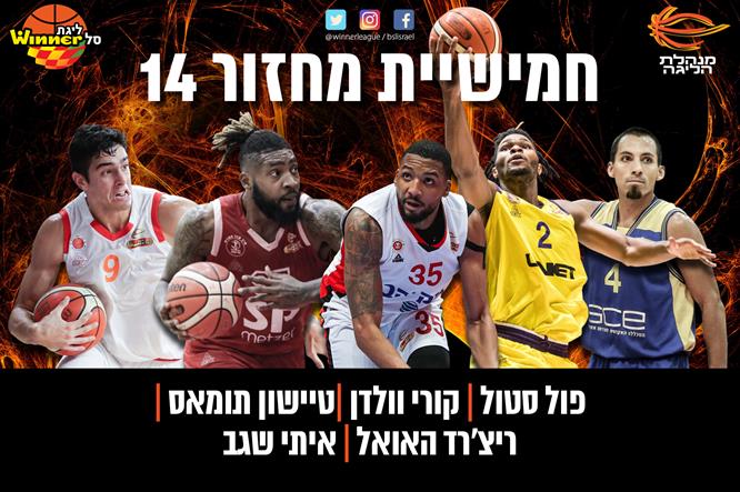 לצידו בחמישייה: פול סטול ששיחק 39 דקות למרות בעיית עבירות מוקדמת וסיים עם 24 נקודות (6-11 לשלוש), 10 אסיסטים ו-5 חטיפות בניצחון הבית הראשון של מכבי אשדוד/באר טוביה העונה מול בני "רב-בריח" הרצליה; טיישון תומאס שרשם 14 נקודות, 12 ריבאונדים ומדד 28 בניצחון הפועל "בנק יהב" ירושלים על עירוני "חי מוטורס" נס ציונה; ריצ'רד האואל שסייע להפועל "SP מצר" ת"א לקטוע רצף הפסדים עם 19 נקודות, 8 ריבאונדים ו-4 אסיסטים נגד הפועל גלבוע/גליל; ואיתי שגב שהשווה שיא קריירה עם 15 נקודות, 9 ריבאונדים ומדד 26 בניצחון של מכבי ראשל"צ על עירוני נהריה.