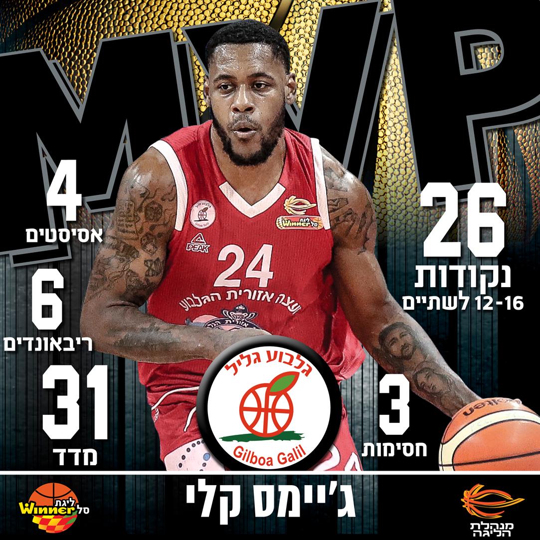 כמעט כל זר שעבר בהפועל גלבוע/גליל בשנתיים האחרונות נבחר מתישהו למצטיין המחזור בליגת ווינר סל – והשבוע הגיע תורו של ג'יימס קלי. הסנטר, שעבר תקופה אישית לא קלה לאחרונה, עזר לאדומים מגן נר לקטוע רצף של שמונה הפסדים עם 87:89 דרמטי בחוץ על עירוני נהריה באחד המשחקים הכי טובים שלו העונה. בזכות הניצחון, גלבוע התרחקה מהתחתית ותוכל לחזור להתרכז לעת עתה במאבקי המיקום בפלייאוף.