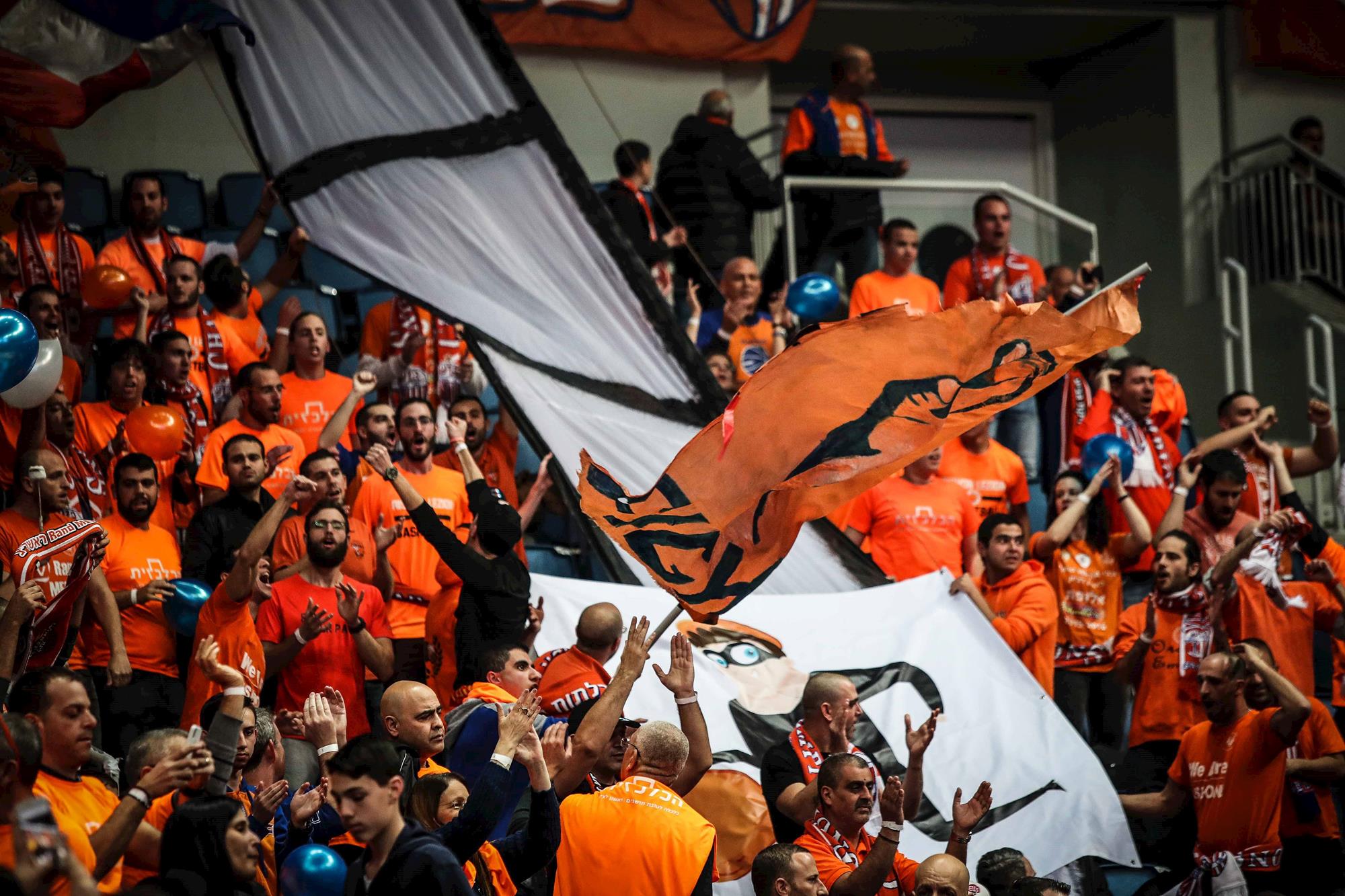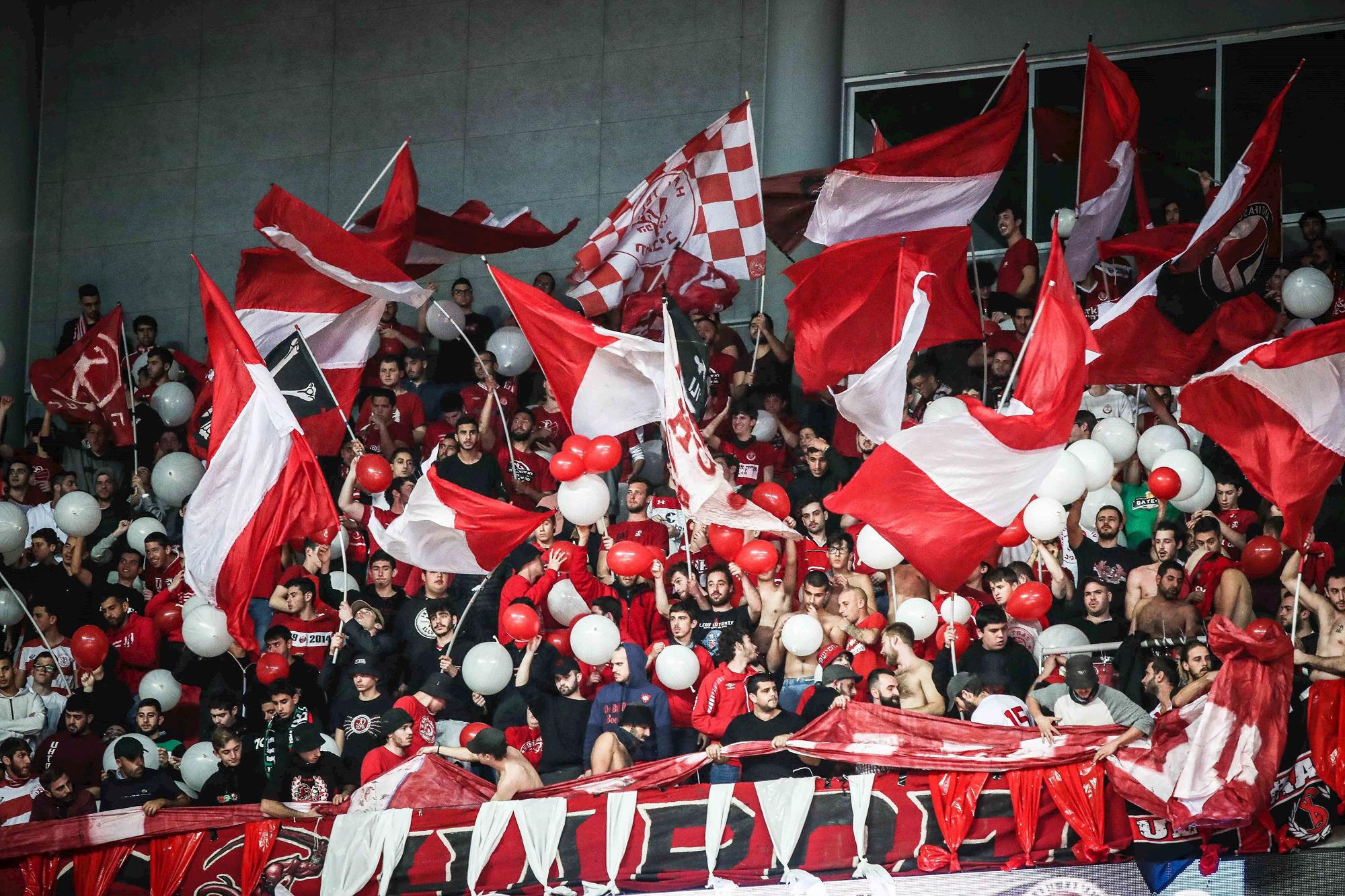 חגיגה באדום ובכתום ביציעים (צילומים: עודד קרני)