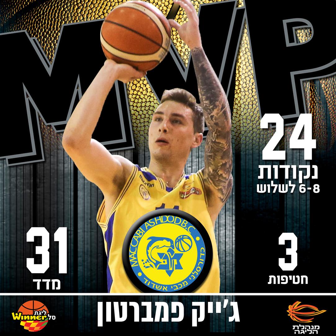עד אתמול (ראשון), השם ג'ייק פמברטון לא אמר הרבה לחובב הכדורסל הממוצע. הרוקי מאוניברסיטת דנבר אמנם פתח בחמישייה של מכבי אשדוד/באר טוביה במחזורים האחרונים, אבל התקשה מאוד בקליעה ועמד על ממוצע עונתי של 2.6 נקודות עם פחות מ-16% מעבר לקשת. במחזור ה-18 הוא שיחרר ניצרה, שילש את שיא העונה שלו עם 24 נקודות והוביל את "הדולפינים" לניצחון חשוב על עירוני נהריה בדרך לבחירה לשחקן השבוע.