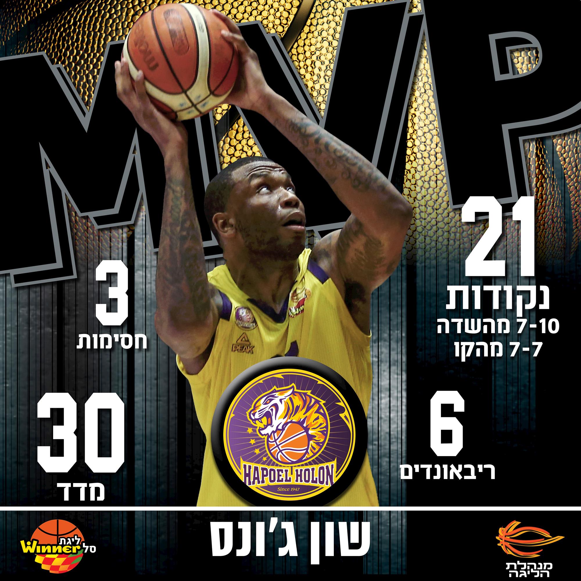 ג'ונס פתח את המשחק מצוין ועזר לחולון לבנות יתרון בו החזיקה כמעט כל הערב. ב-21 דקות על הפרקט הוא קלע 21 נקודות, כשהוא מדייק ב-7 מ-10 מהשדה ומרשים עם 7 מ-7 מושלם מהקו, שבוע אחרי שהחטיא 7 זריקות עונשין בהרצליה. הסנטר של הסגולים השווה את שיאו העונתי עם 3 חסימות וסגר רצף של שלושה משחקים עם מדד 30 ומעלה.