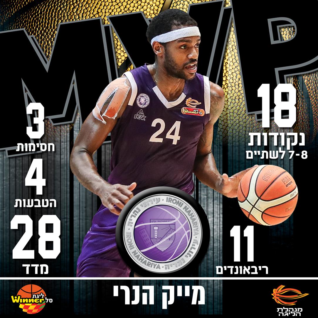 אחד הגורמים לרצף ההפסדים של נהריה היה הירידה בכושרו של הפורוורד, שנעצר על חד-ספרתי בחמישה משבעת המחזורים הקודמים. בהיכל טוטו במוצ"ש הוא חזר ליכולת המצוינת מתחילת העונה והוביל את קבוצתו לאחת מההפתעות הגדולות של העונה עם 18 נקודות (7-8 לשתיים), שיא עונה של 11 ריבאונדים, 3 אסיסטים, 3 חסימות ו-4 הטבעות בדרך למדד 28.