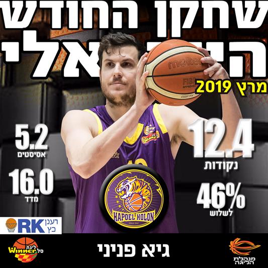בגיל 35.5, גיא פניני משחק לדעת רבים את הכדורסל הטוב בחייו. הפורוורד הוותיק של הפועל "יונט" חולון, שעזר לה להעפיל לחצי גמר היורופקאפ ולטפס בחזרה למקום הראשון בליגת ווינר סל, נבחר לשחקן החודש הישראלי של מרץ ויזכה במילגת לימודים בסך 1,000 דולרים מתנת רענן כץ, לאחר שנבחר ברוב של 72% בהצבעה של פאנל התקשורת.