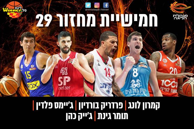 לצידו בחמישייה: קמרון לונג הלוהט שקירב את מכבי ראשל"צ לפלייאוף עם 21 נקודות (4 מ-6 לשלוש) ו-6 אסיסטים נגד עירוני נהריה; פרדריק בורדיון שקלע שיא קריירה של 21 נקודות בניצחונה של הפועל "מול הים" אילת על עירוני "חי מוטורס" נס ציונה; תומר גינת שכיכב בניצחון החשוב של הפועל "SP מצר" ת"א על מכבי אשדוד/באר טוביה עם 19 נקודות, 7 ריבאונדים ו-4 אסיסטים; וג'ייק כהן שקלע 20 נקודות ללא החטאה ב-19 דקות והוביל את מכבי "FOX" ת"א במדד (28) בניצחון החוץ על בני "רב-בריח" הרצליה.