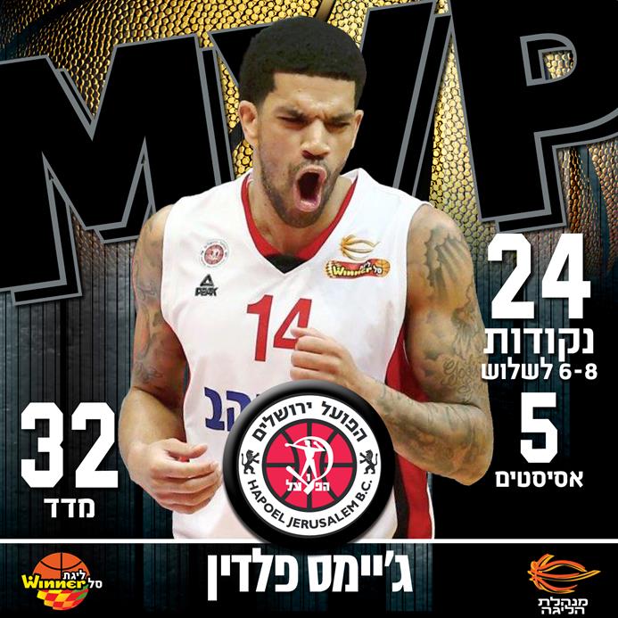 הגארד של הפועל "בנק יהב" ירושלים רשם 24 נקודות ומדד 32 ב-23 דקות על הפרקט. לצידו בחמישייה: קמרון לונג, פרדריק בורדיון, תומר גינת וג'ייק כהן