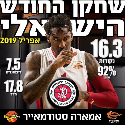 במשך שני סיבובים המתין אמארה סטודמאייר לאזרחות הישראלית ולרישומו לליגת ווינר סל – וברגע שזה קרה, הוא חזר בסערה לפרקט. מאז שובו למגרשים בארץ, הפועל "בנק יהב" ירושלים הפסידה רק פעם אחת בסיבוב השלישי והבטיחה סופית את יתרון הביתיות ברבע גמר הפלייאוף. הסנטר עצמו נראה מצוין ופאנל הבוחרים העניק לו את תואר שחקן החודש הישראלי באפריל.