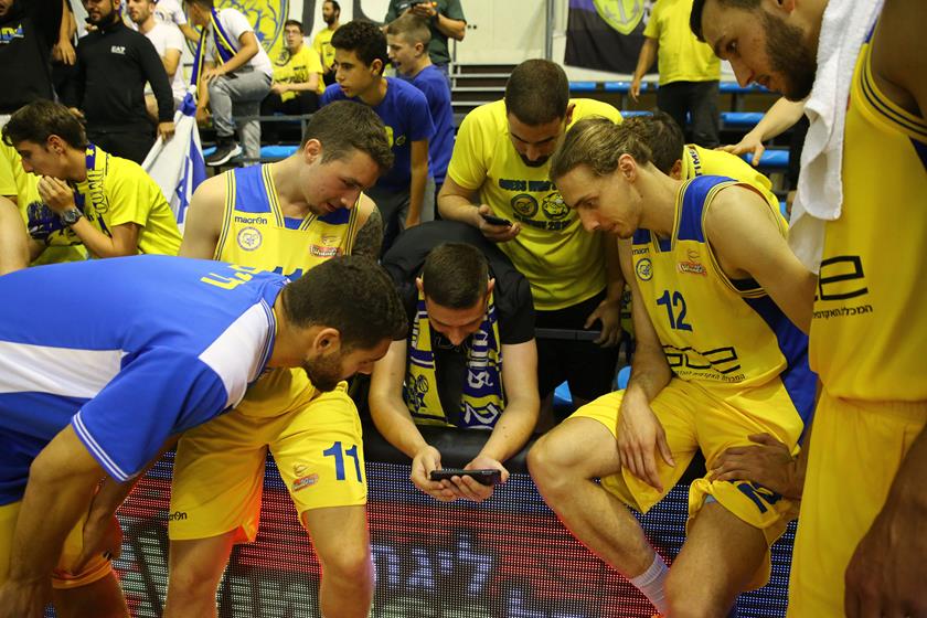 שחקני אשדוד נדבקים למסכים בסיום (צילומים: לירון מולדובן)