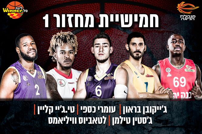 לצידו בחמישייה: ג'ייקובן בראון שקלע 21 נקודות ב-20 דקות בלבד בדרך לניצחון נוסף של הפועל "בנק יהב" ירושלים על עירוני "חי מוטורס" נס ציונה; עומרי כספי שהרשים במשחק החזרה שלו לליגה עם 13 נקודות, 6 ריבאונדים ו-6 אסיסטים במדי מכבי "FOX" ת"א נגד מכבי ראשל"צ; ג'סטין טילמן שעזר לגלבוע/גליל לכבוש את הפסגה עם 24 נקודות, 11 ריבאונדים ומדד 32 נגד הפועל "אלטשולר שחם" באר שבע; ולטאביוס וויליאמס שרשם 23 נקודות, 14 ריבאונדים ומדד 37 בניצחונה של חולון.