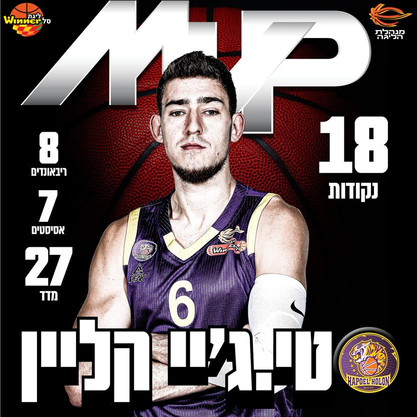 קליין קלע שיא קריירה של 18 נקודות, השווה את שיאי הקריירה שלו באסיסטים (7) ובמדד (27) וגם קלט 8 ריבאונדים ב-30 דקות. בנוסף, הוא דורג ראשון במדד הפלוס-מינוס עם נתון מרשים של 26+ ועזר לחולון לפתוח את הליגה עם ניצחון לראשונה מזה שלוש שנים. אחרי שסגר את המחצית הראשונה עם שלשה משוגעת על הבאזר, הוא חזר עם המון אנרגיות מחדרי ההלבשה והוביל את הבריחה בסגול.