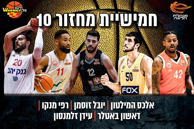 לצידו בחמישייה: יובל זוסמן שהוביל את קלעי מכבי "FOX" ת"א בדרבי מול הפועל "SP מצר" ת"א עם 15 נקודות ושלוש שלשות ללא החטאה, כולל השתיים שהפכו את המשחק בסיום; רפי מנקו שהצטיין בניצחון החשוב של הפועל "יוסי אברהמי" אילת על מכבי אשדוד עם 21 נקודות, 6 ריבאונדים, 4 אסיסטים ופלוס-מינוס 31+; דאשון באטלר שקלע 20 נקודות וארבע שלשות שסייעו להפועל "אלטשולר שחם" באר שבע לנצח את עירוני נהריה אחרי בצורת של חודש וחצי; ועידן זלמנסון שקלע שיא עונתי של 17 נקודות (8-9 מהשדה) בניצחון הפועל "בנק יהב" ירושלים על מכבי חיפה.