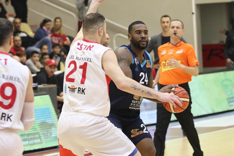 הפועל גלבוע/גליל שוב הייתה מעורבת במותחן, אבל הפעם חייכה בסיום עם 74:76 על הפועל "יוסי אברהמי" אילת מסל גדול של ג'ארמר גאלי (צילום: לילך וייס)