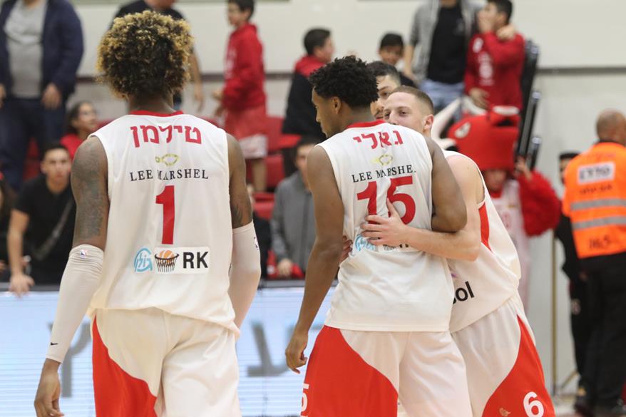 רייבונטה רייס קלע נקודות בכורה בארץ הקודש, בן צבי מסר אסיסט נהדר לדאנק של דבנפורט והגארד האמריקאי החדש הראה יכולות גם בהגנה עם חטיפה ואסיסט למנקו, 17:29. גאלי וטילמן עצרו את כדור השלג, אבל תומפסון שלט מתחת לסלים וקבע יתרון 25:34. דבנפורט ספג עבירה שלישית (טכנית), נתנאל ארצי צלף מבחוץ וסוסה גילח עוד שתי נקודות מההפרש בקליעות עונשין, אלא שג'ף גריי שעלה מהספסל ושולדבראנד הפגיזו מבחוץ וברחו שוב, 30:41. ארצי חטף וטס כל הדרך לדאנק מרשים ביד שמאל, מנקו וסוסה השיגו כל אחד בתורו מהלך של 3 נקודות ובמחצית 36:44 לאורחים.