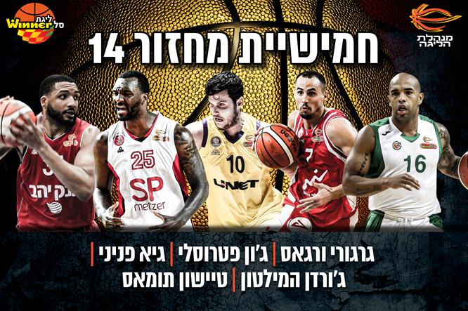 פורוורד הפועל "SP מצר" ת"א להט עם 27 נקודות, 7 שלשות, 8 ריבאונדים ו-6 אסיסטים בניצחון בית חשוב. לצידו בחמישייה: ורגאס, פטרוסלי, פניני ותומאס