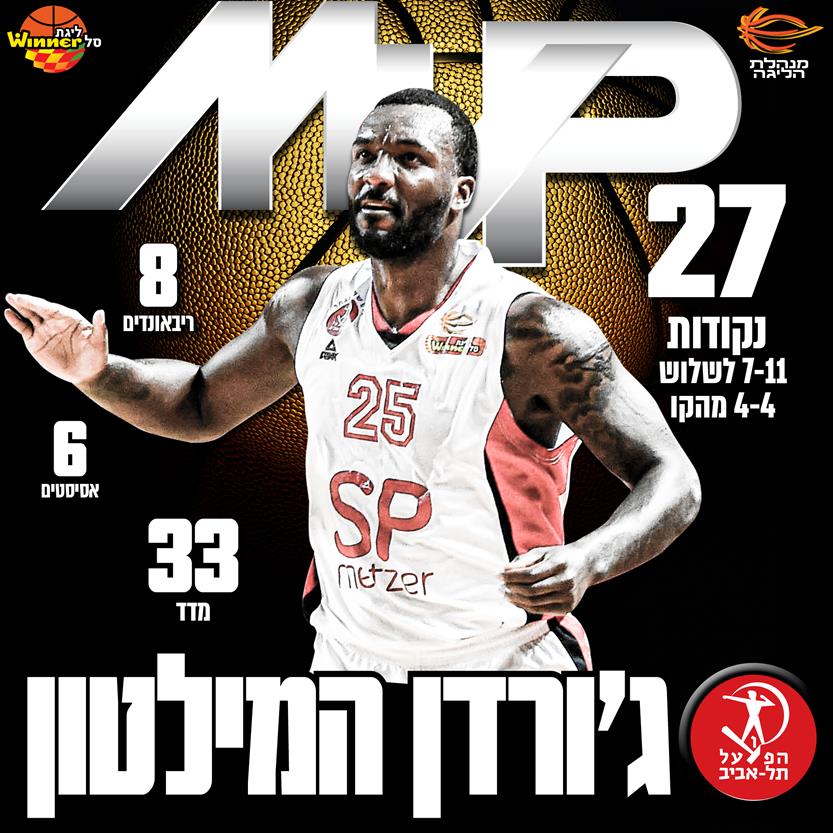 המילטון שיפר את שיאו העונתי פעמיים בשבוע האחרון ובניצחון על מכבי אשדוד היה נפלא עם 27 נקודות, 7 מ-11 מעבר לקשת, 8 ריבאונדים, 6 אסיסטים ומדד 33 ב-38 דקות על הפרקט. ברבע השני, כשהאדומים כבר נפלו לפיגור של 13 נקודות, הוא התחיל את ההפגזה מעבר לקשת וביחד עם ים מדר החזיר את הקבוצה לעניינים. הפורוורד בן ה-29 היה רחוק נקודה אחת בלבד משיא הקריירה שלו בארץ ויש לו חלק חשוב בכך שהפועל ת"א ניצחה בארבעה מחמשת משחקי הבית האחרונים שלה.