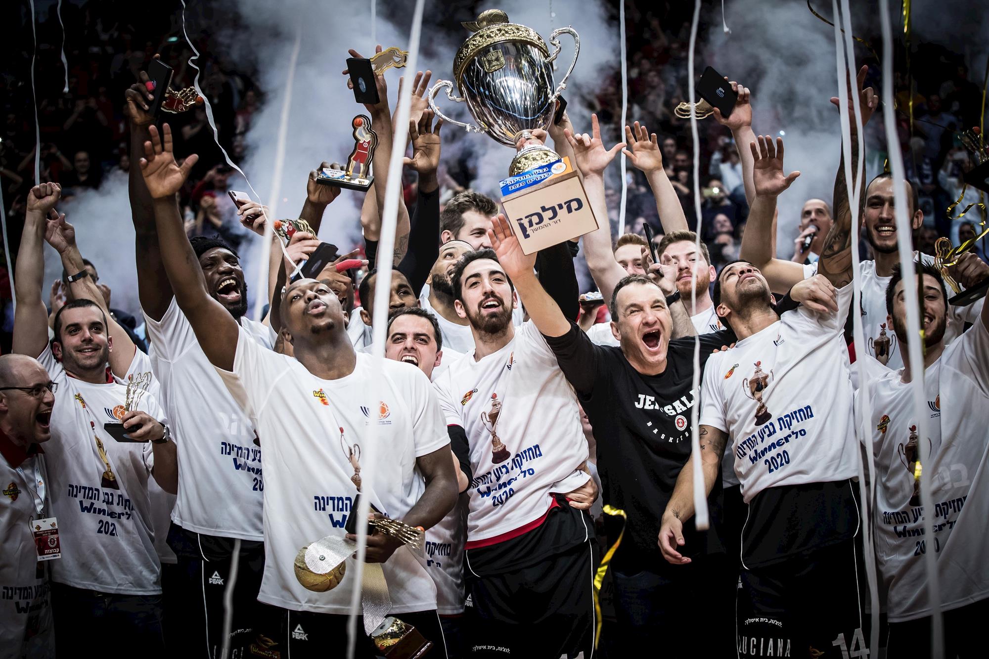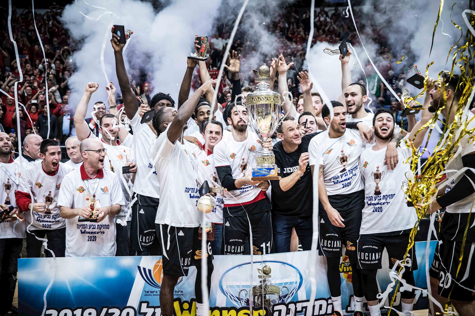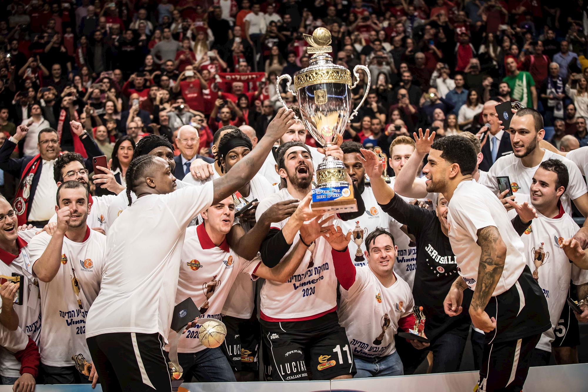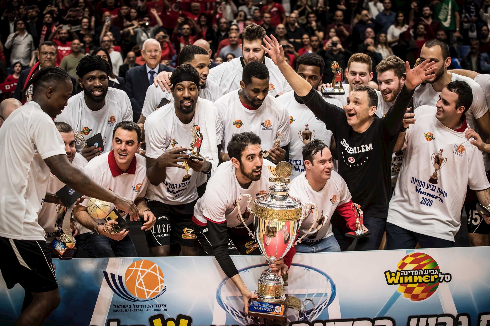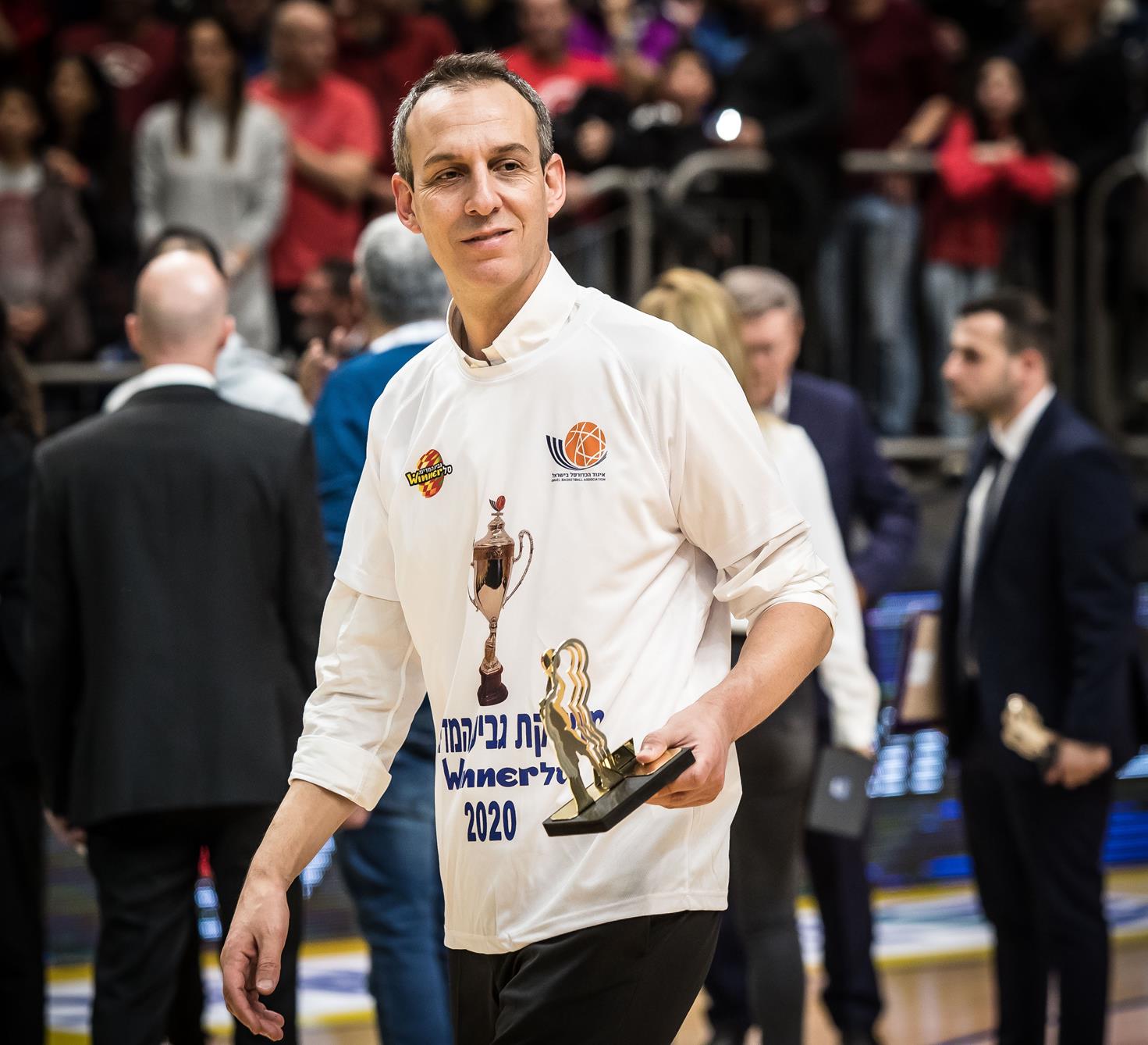 עודד קטש חגג גביע שני ברציפות עם הפועל "בנק יהב" ירושלים: "הקהל מרגש ברמות מטורפות". בראון שנבחר למצטיין: "מודה לטרנט לוקט" (צילום: עודד קרני)
