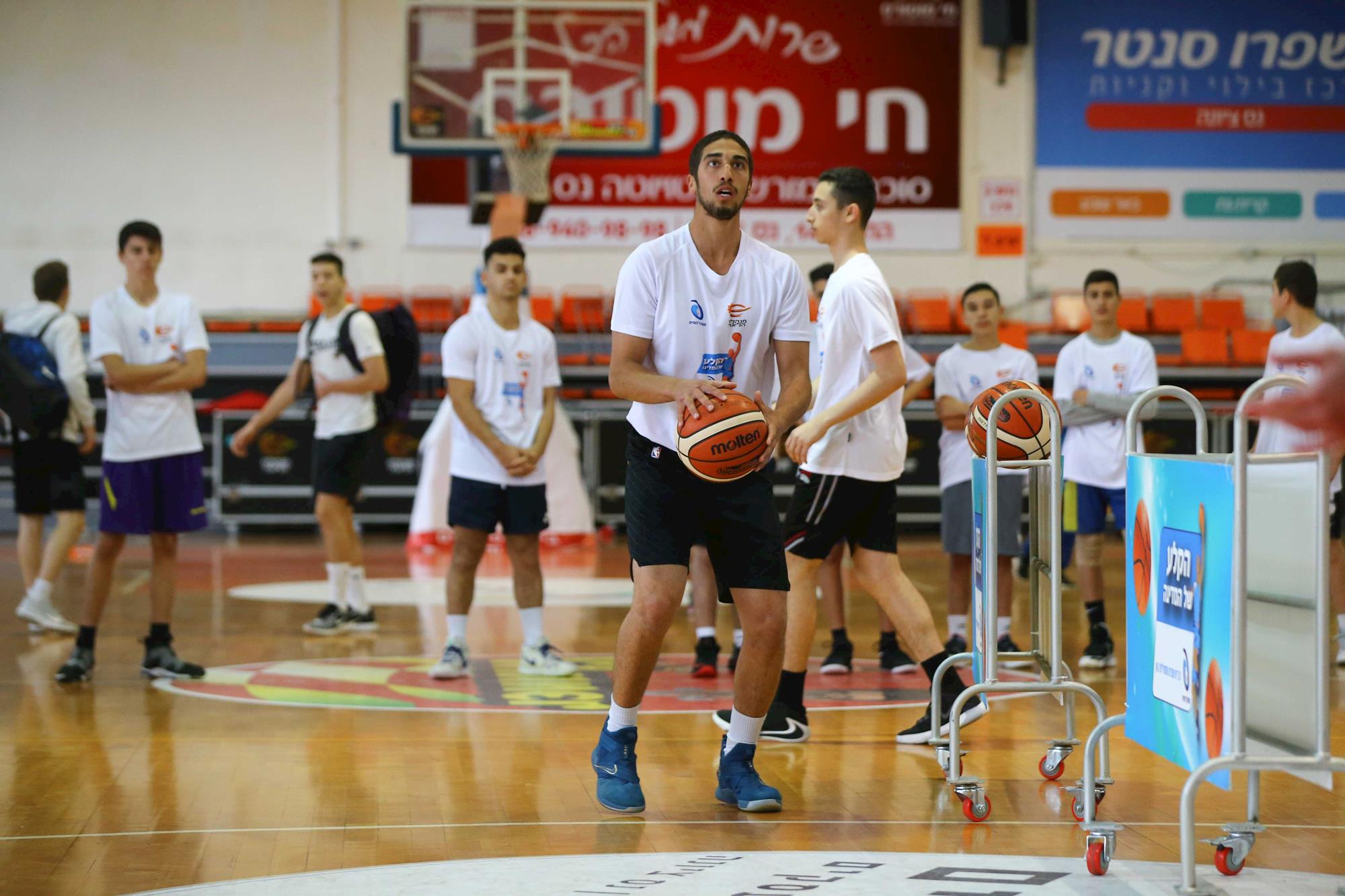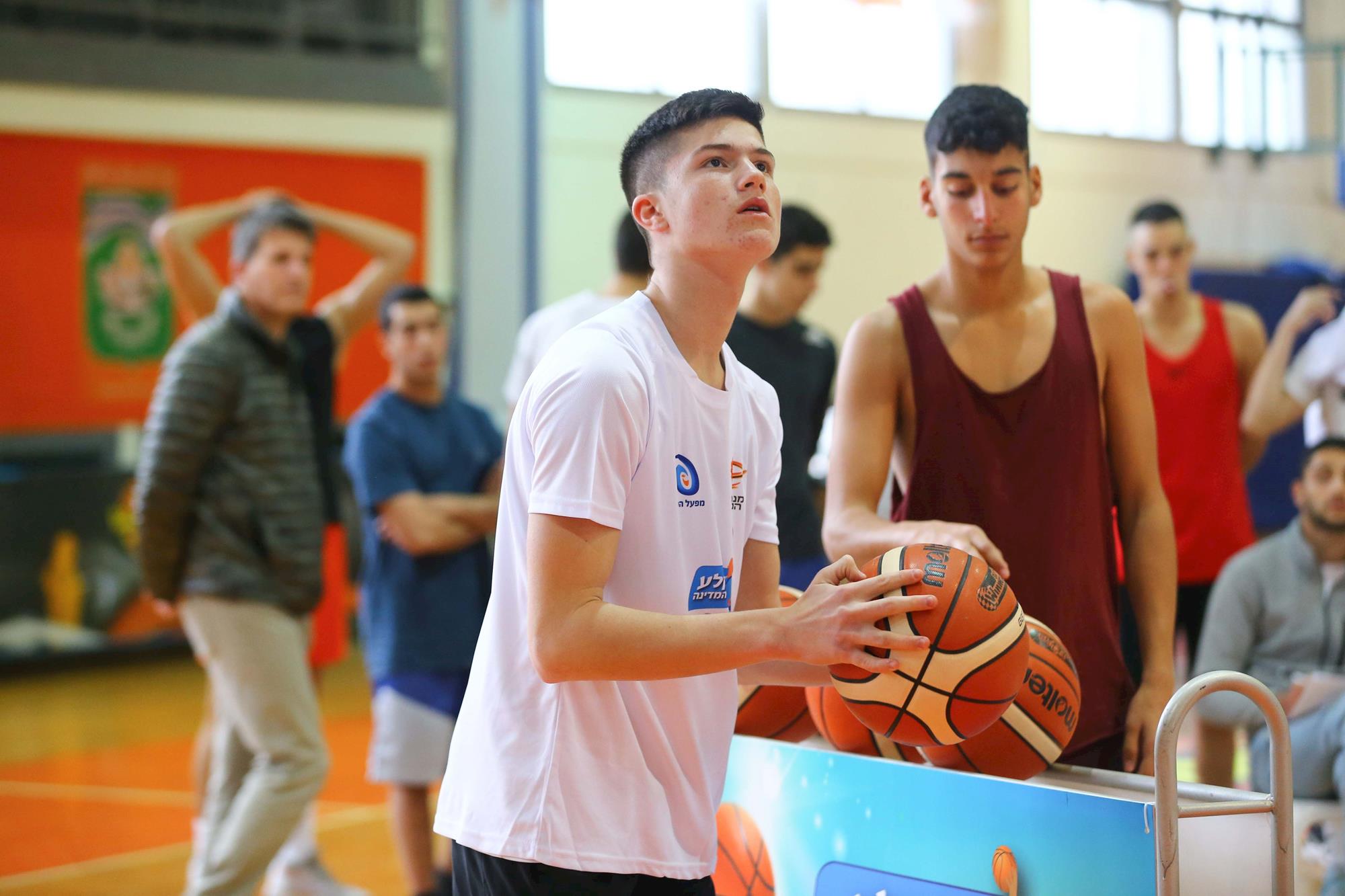 רועי ויגודמן, בנו של עוז, דורג ראשון במוקדמות התחרות של מנהלת הליגה בשיתוף מפעל הפיס בנס ציונה. סבב קליעה מושלם לאלמוג שור (צילום: לירון מולדובן)