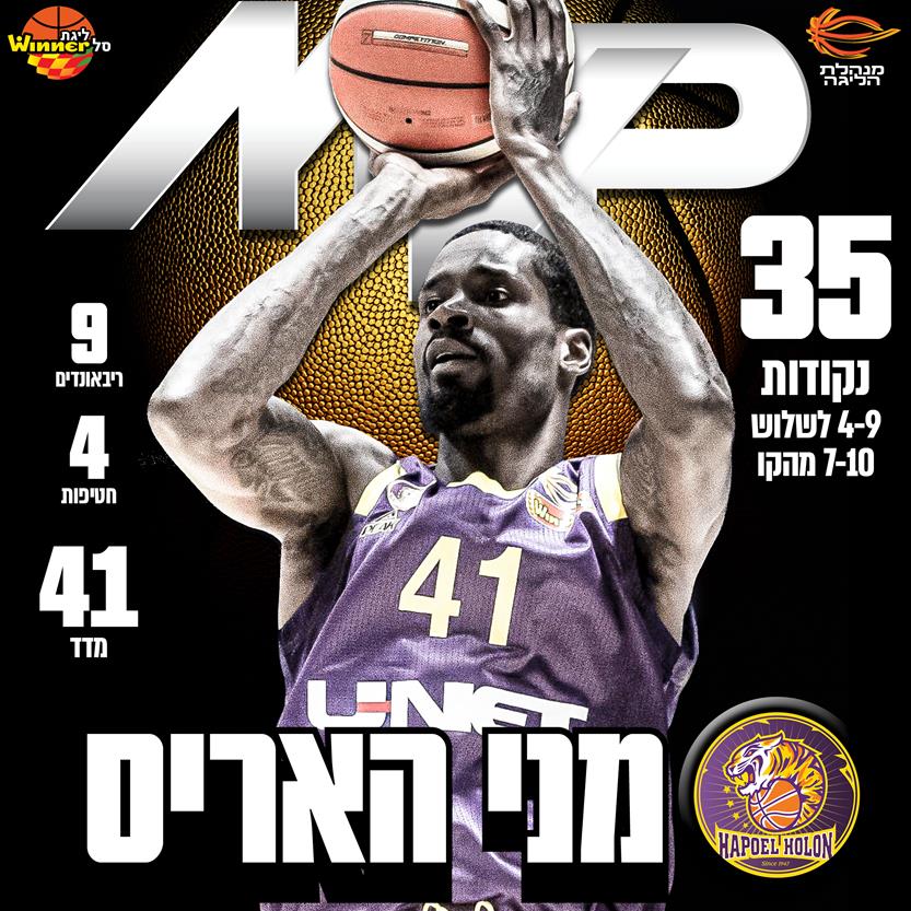 במשך שלושה רבעים, זה לא ממש היה משחק גדול של מני האריס. הוא התקשה בקליעה מבחוץ וקבוצתו הפועל "יונט" חולון מצאה את עצמה בפיגור דו-ספרתי מול מכבי ראשל"צ. אלא שאז מספר 41 העמיס את הקבוצה על גבו ובתצוגת קלאץ' גדולה סידר לסגולים-צהובים ניצחון דרמטי בשתי הארכות בדרך לתואר מצטיין המחזור ה-21 בליגת ווינר סל.