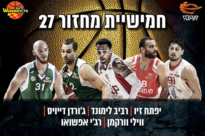 לצידו בחמישייה: רביב לימונד שקלע 13 נקודות ומסר 10 אסיסטים עבור עירוני "חי מוטורס" נס ציונה, שתקעה יתד בשמינייה הראשונה אחרי ניצחון חוץ על עירוני נהריה; ג'ורדן דייויס שכהרגלו לאחרונה התייצב בראש רשימת הקלעים של הפועל "SP מצר" ת"א עם 26 נקודות בניצחון הדרמטי על הפועל "יוסי אברהמי" אילת; ווילי וורקמן (19 נקודות ו-11 ריבאונדים) ורג'י אפשואו (25 נקודות ו-9 ריבאונדים) שהובילו את מכבי חיפה למהפך מאוחר מול מכבי אשדוד והבטיחו את מקומה בפלייאוף.