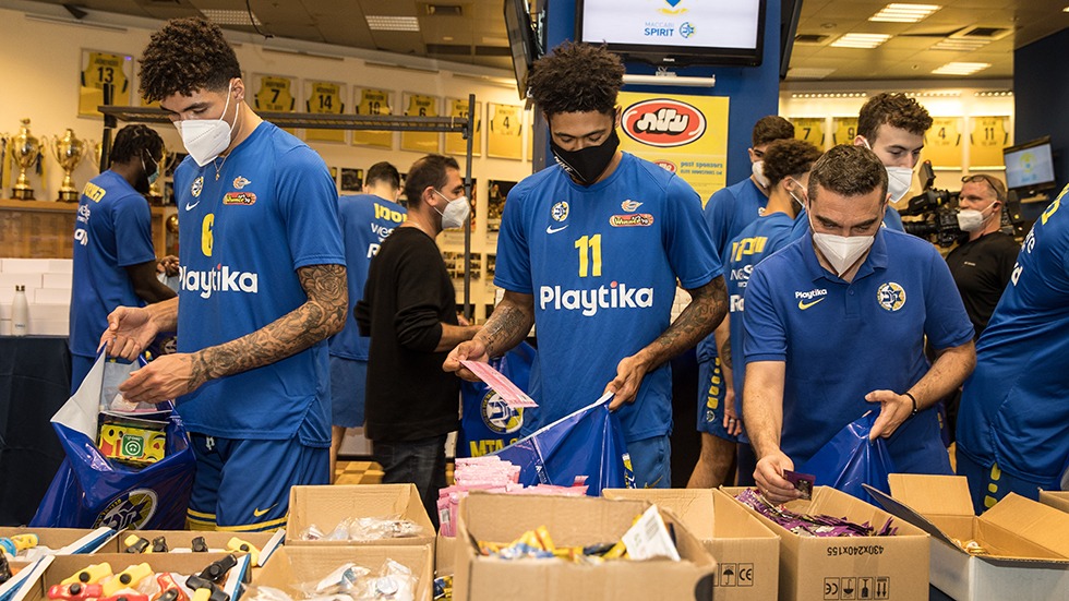 שחקני ומאמני מכבי "Playtika" תל אביב התכנסו עם חיוכים למסכות כדי לארוז חבילות מתנה לקראת חנוכה לילדים המאושפזים במרכז הרפואי שניידר. בשל מגפת הקורונה, הקבוצה לא תוכל לערוך השנה את הביקור המסורתי בבית החולים, אז היא התכנסה להכין יחד את המארזים, שיוענקו בשבוע הבא לילדים על ידי מספר נציגים מהמועדון.
