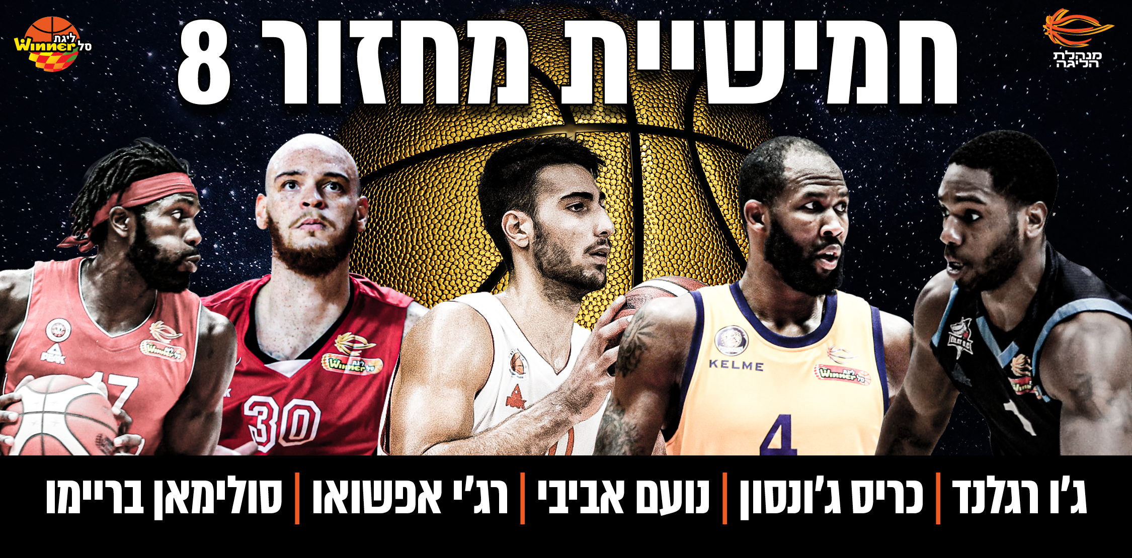 לצידו בחמישייה: ג'ו רגלנד שכיכב עם 21 נקודות, 7 ריבאונדים, 8 אסיסטים ומדד 28 עבור הפועל "יוסי אברהמי" אילת ברוממה; כריס ג'ונסון שצלף 27 נקודות, כולל 6 מ-8 לשלוש, בדרך לניצחון שלישי ברציפות של הפועל "יונט קרדיט" חולון; נועם אביבי ששבר כל שיא אישי אפשרי עם 22 נקודות, 10 ריבאונדים ומדד 29 שסייעו למכבי "צרפתי צבי" ראשל"צ להישאר מושלמת בבית אחרי משחק לא קל מול עירוני "חי מוטורס" נס ציונה; וסולימאן בריימו שחגג עם 25 נקודות ב-25 דקות בניצחון הפועל "בנק יהב" ירושלים על בני הרצליה.
