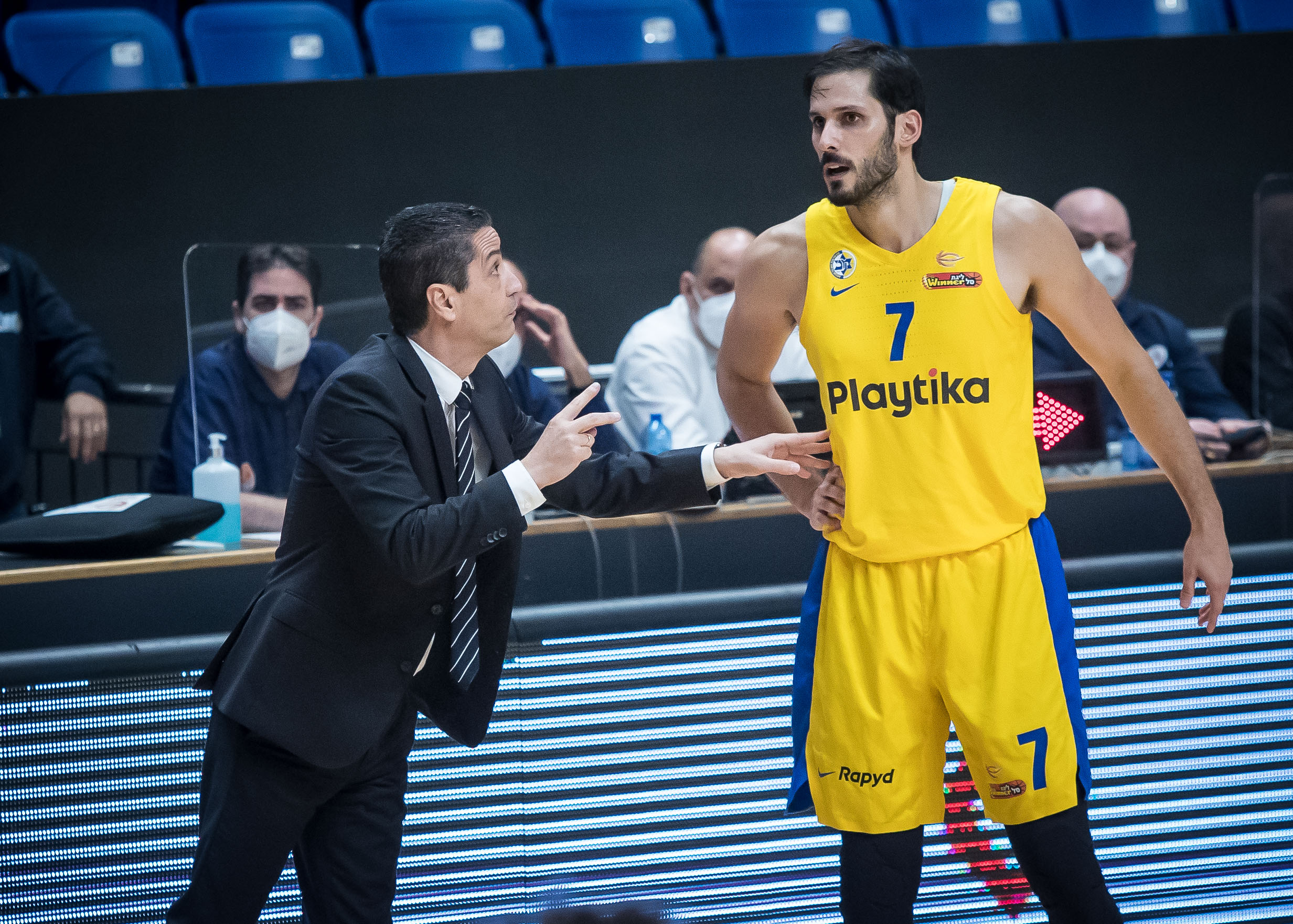כספי וספרופולוס. ניצחון בדרבי הראשון (צילום: עודד קרני, באדיבות איגוד הכדורסל)