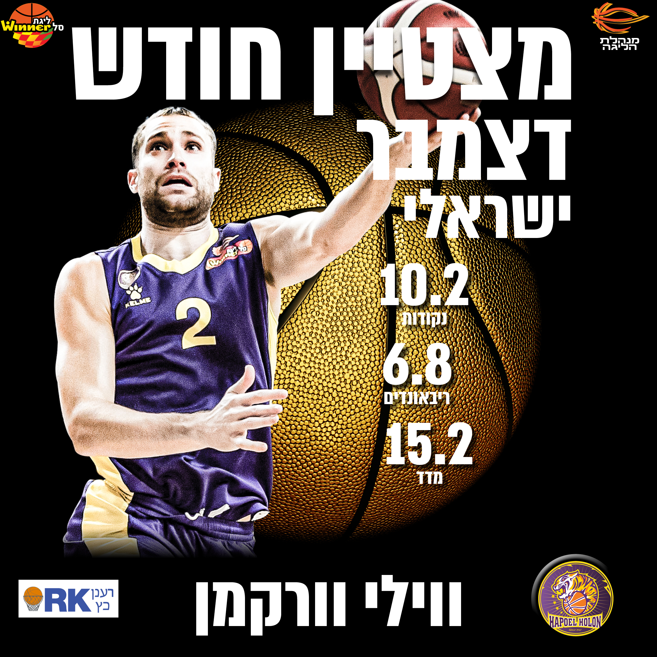 וורקמן מדורג בטופ 10 של הישראלים בריבאונדים ובאחוזים לשתיים ובחודש החולף הוא רשם ממוצעים יפים של 10.2 נקודות, 6.8 ריבאונדים, 1.4 אסיסטים, 1.0 חטיפות ומדד 15.2 בכמעט 26 דקות למשחק. ממשחק למשחק כמות הדקות שלו גדלה, כשהוא משחק בשתי עמדות הפורוורד ולעיתים אפילו כסנטר בשל מכת הפציעות בסגול. הפורוורד הגיע לשיאו בניצחון על הפועל חיפה בו רשם שיאי קריירה של 21 נקודות ו-8 ריבאונדים.