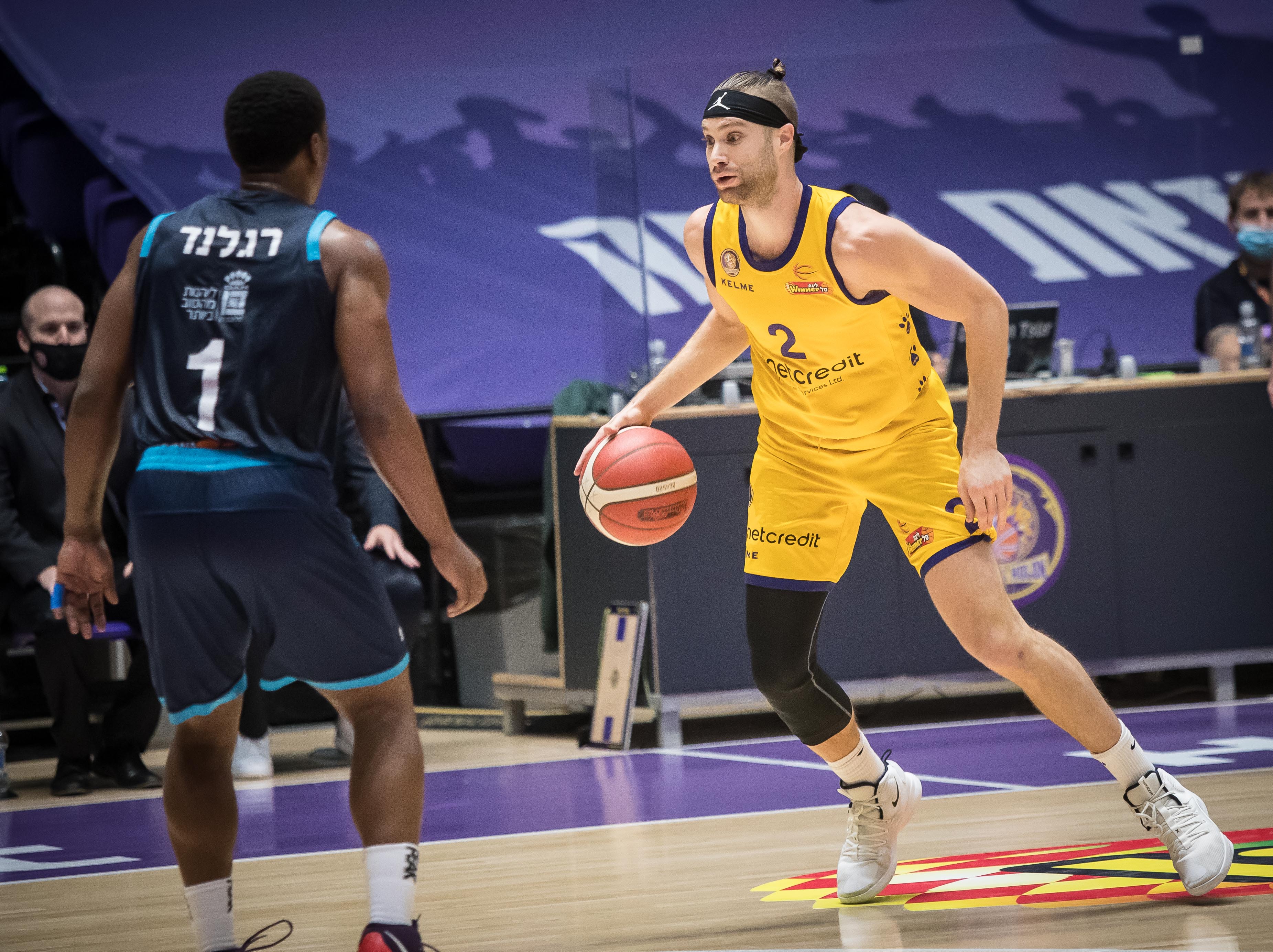 פרדריק בורדיון הפגיז תשע שלשות וסידר להפועל "יונט קרדיט" חולון את ראשות בית ג', לאחר 102:105 ביתי בהארכה על הפועל "יוסי אברהמי" אילת (צילום: עודד קרני)