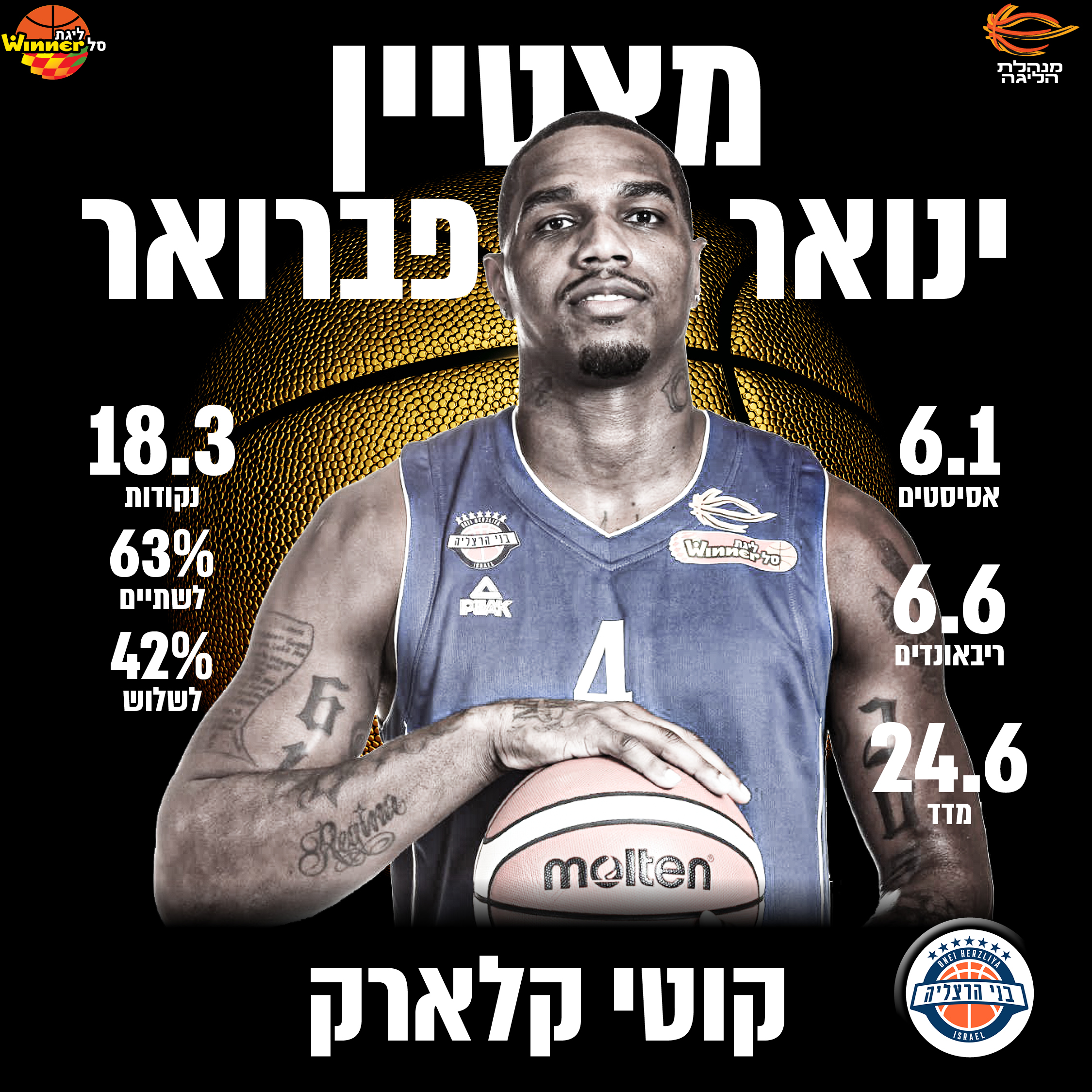 אחת הסיבות לפתיחת העונה הצולעת של בני הרצליה הייתה הפציעה של קוטי קלארק, שהושבת מהמחזורים הראשונים ונזקק למספר שבועות כדי לחזור לעניינים. הסיבה העיקרית להתאוששות שלה היא יכולת השיא של הפורוורד, שבסדרת משחקים גדולים הוציא אותה ממאבקי התחתית ונבחר לשחקן המצטיין של חודשים ינואר ופברואר בליגת ווינר סל, על פי פאנל הבוחרים, המורכב מעיתונאים מכל גופי התקשורת שמסקרים את הליגה. למקום השני במשאל הגיע קינן אוואנס מהפועל "בי-קיור לייזר" חיפה ולשלישי כריס ג'ונס ממכבי "Playtika" ת"א.