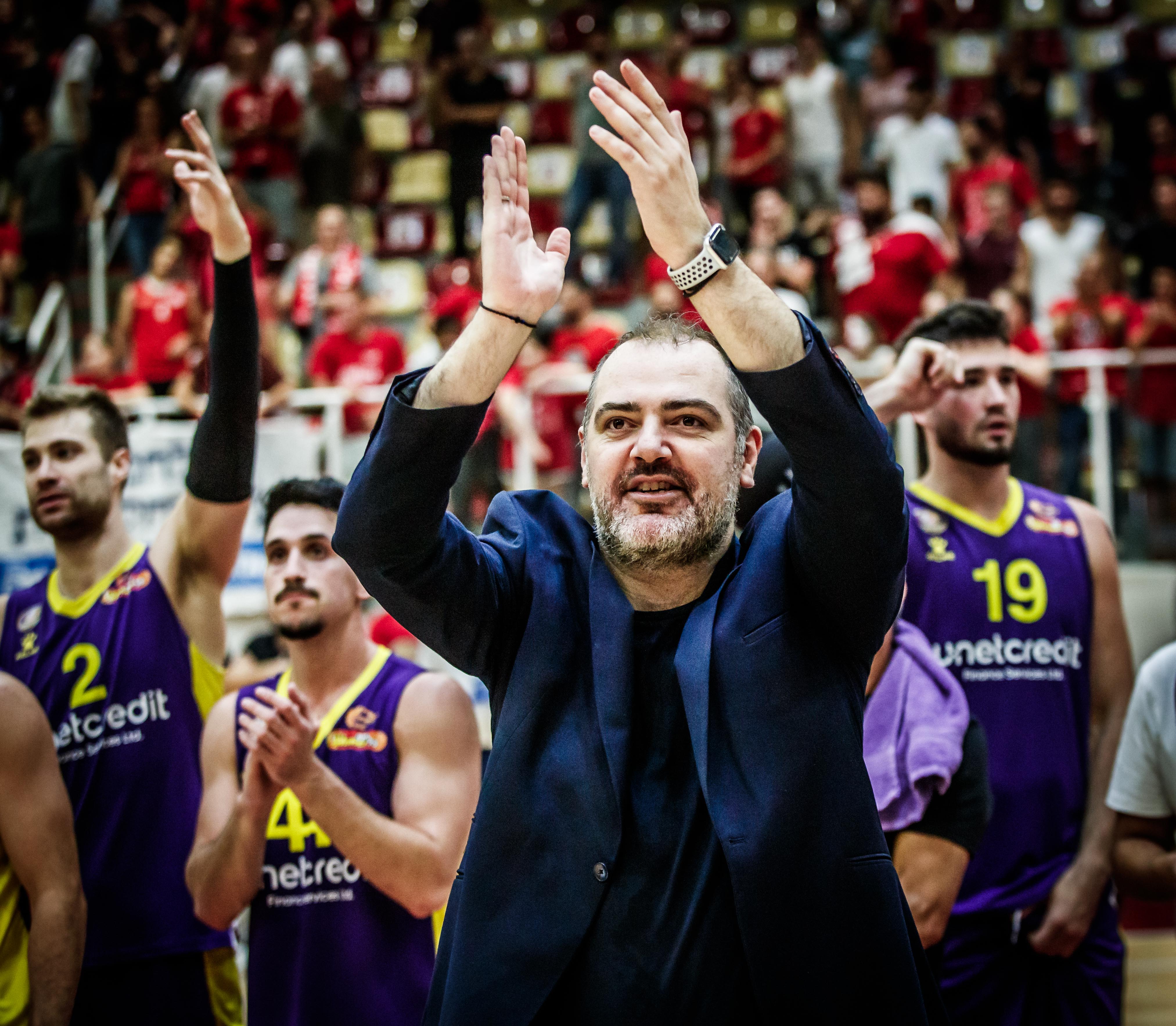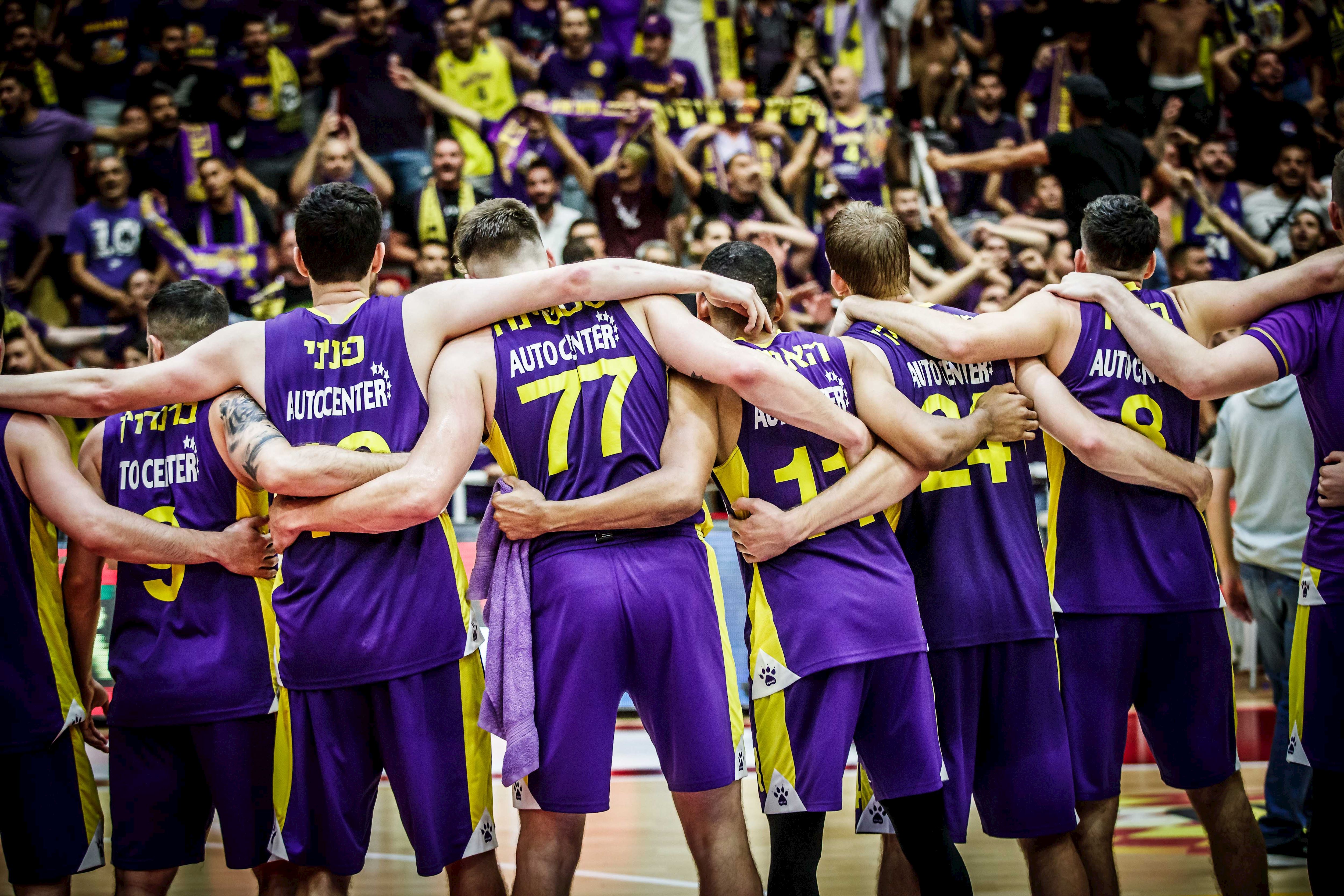 הקהל הסגול מודה לשחקנים ולמאמן - ולהיפך (צילומים: עודד קרני)