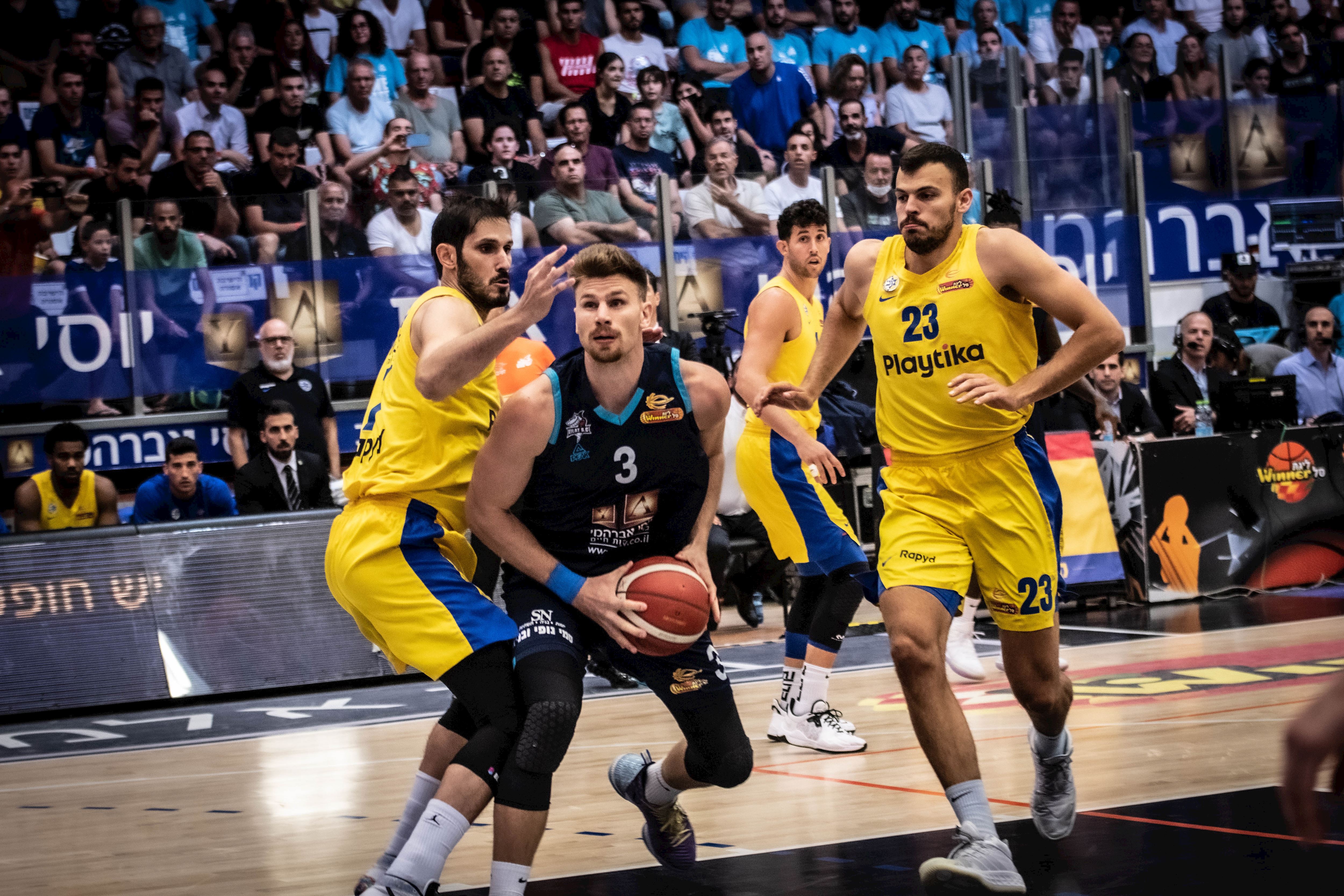מכבי "Playtika" ת"א לחצה על הדוושה בסיום, גברה על הפועל "יוסי אברהמי" אילת 79:80 לאחר מהפך ברבע הרביעי והשלימה סוויפ 0:2 בחצי הגמר (צילום: רז גליל)
