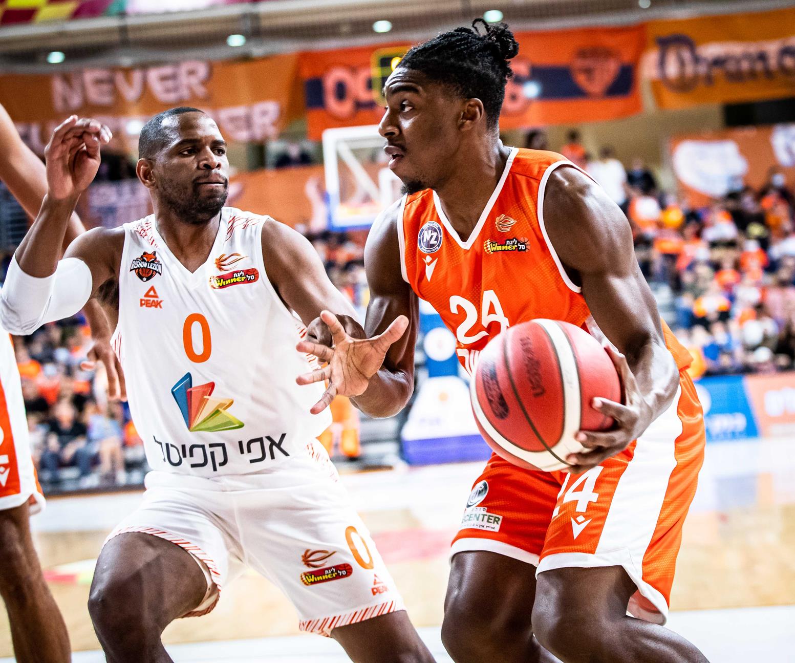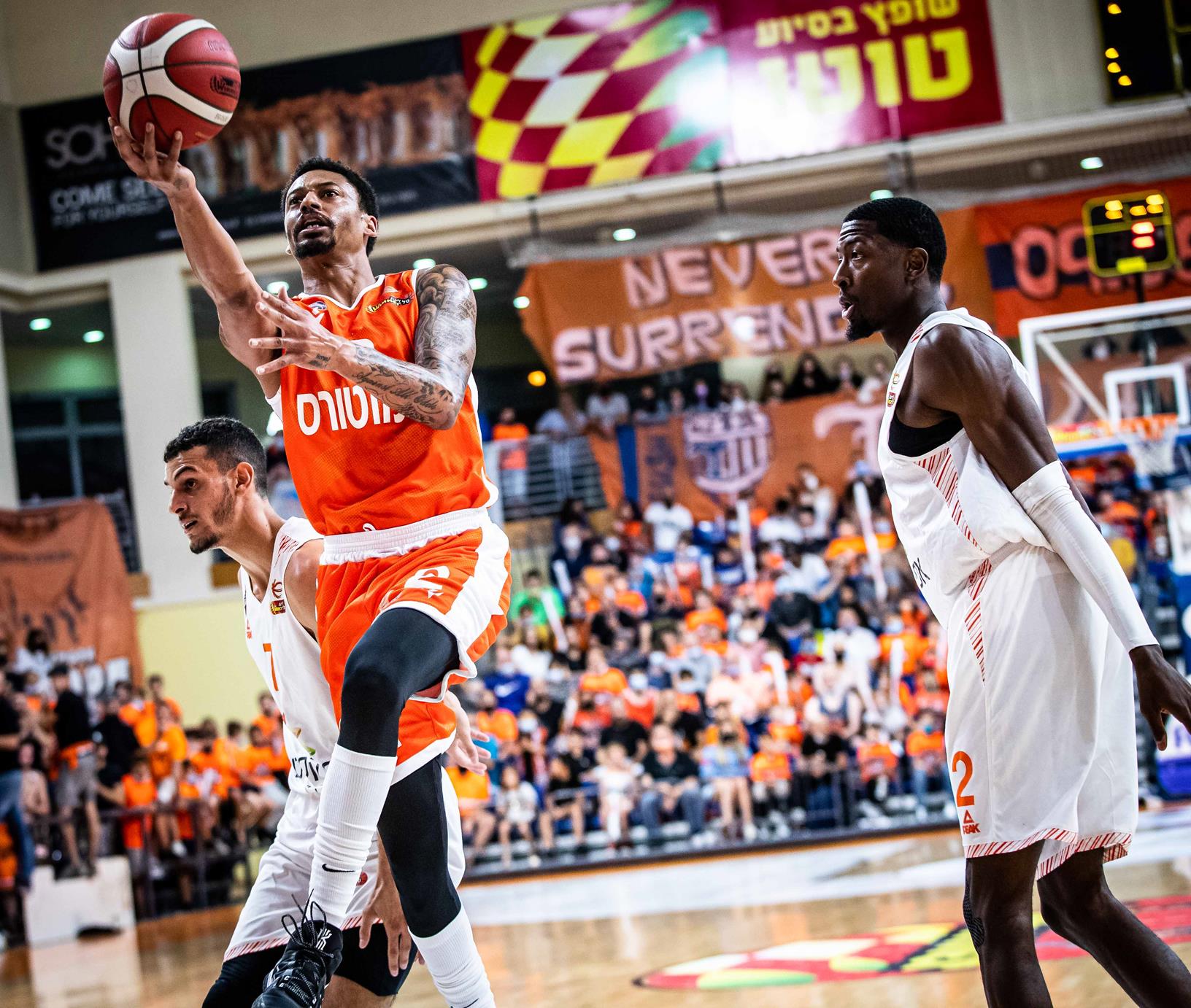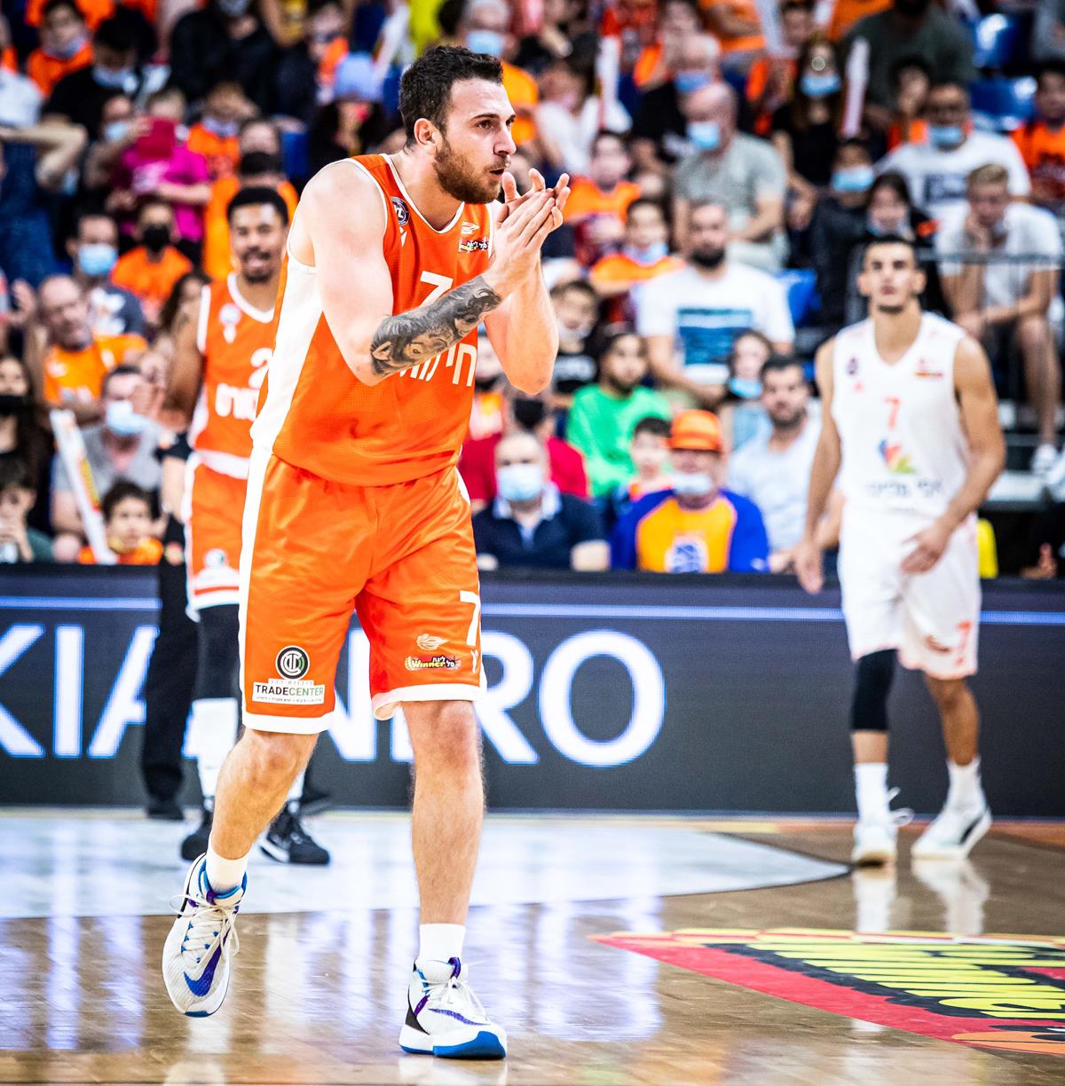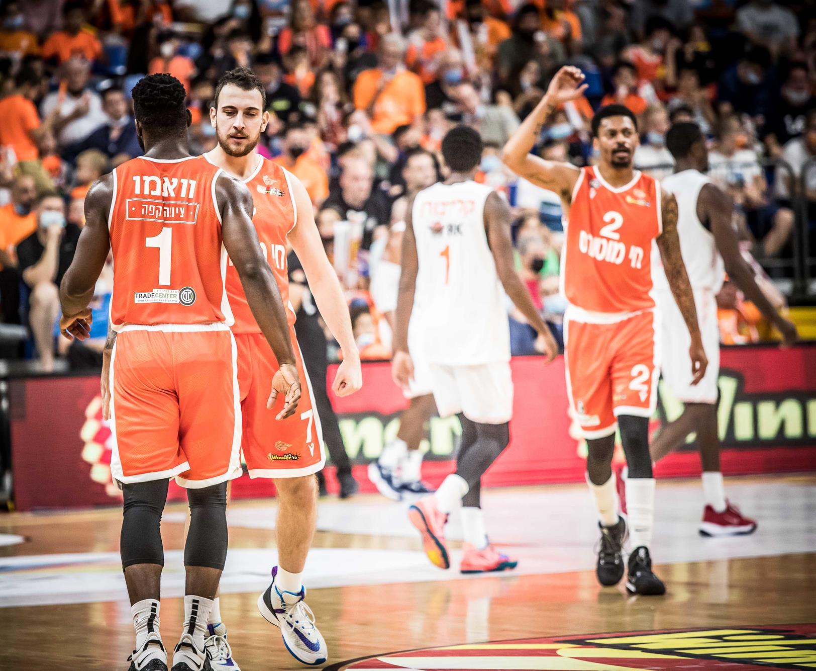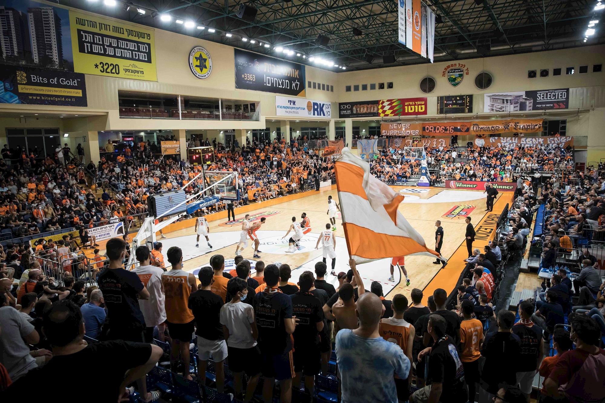 אולם מלא בכתומים בבית מכבי (צילומים: עודד קרני)
